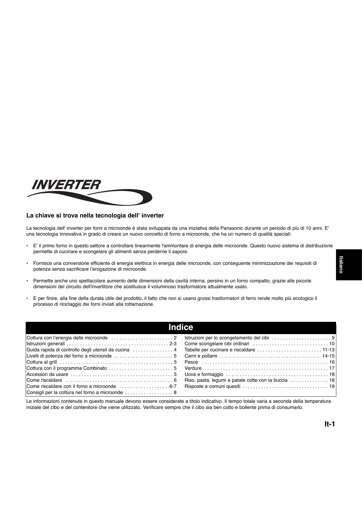 La tecnología de inversor para hornos microondas se viene desarrollando desde hace más de diez años, fruto de una iniciativa de National/Panasonic. Se trata de la tecnología fundamental para fabricar un tipo de horno microondas muy diferente, que posee cierto número de características especiales: • Hace posible el primer horno del sector que controla la cantidad de energía de microondas de manera lineal. Este nuevo sistema de distribución permite cocinar y descongelar los alimentos sin que éstos pierdan su sabor. • Ofrece una transformación eficaz de la energía eléctrica en energía de microondas, lo que se traduce en una reducción al mínimo del consumo eléctrico, sin sacrificar la potencia del microondas. • Permite un espectacular aumento de la capacidad interior del horno, incluso en los modelos más compactos, debido al reducido tamaño del circuito inversor, que sustituye a los voluminosos transformadores empleados en la actualidad. • Por último, al prescindir de ese voluminoso transformador de hierro, el proceso de reciclaje del horno no daña el medio ambiente al final de la vida útil del producto. Español