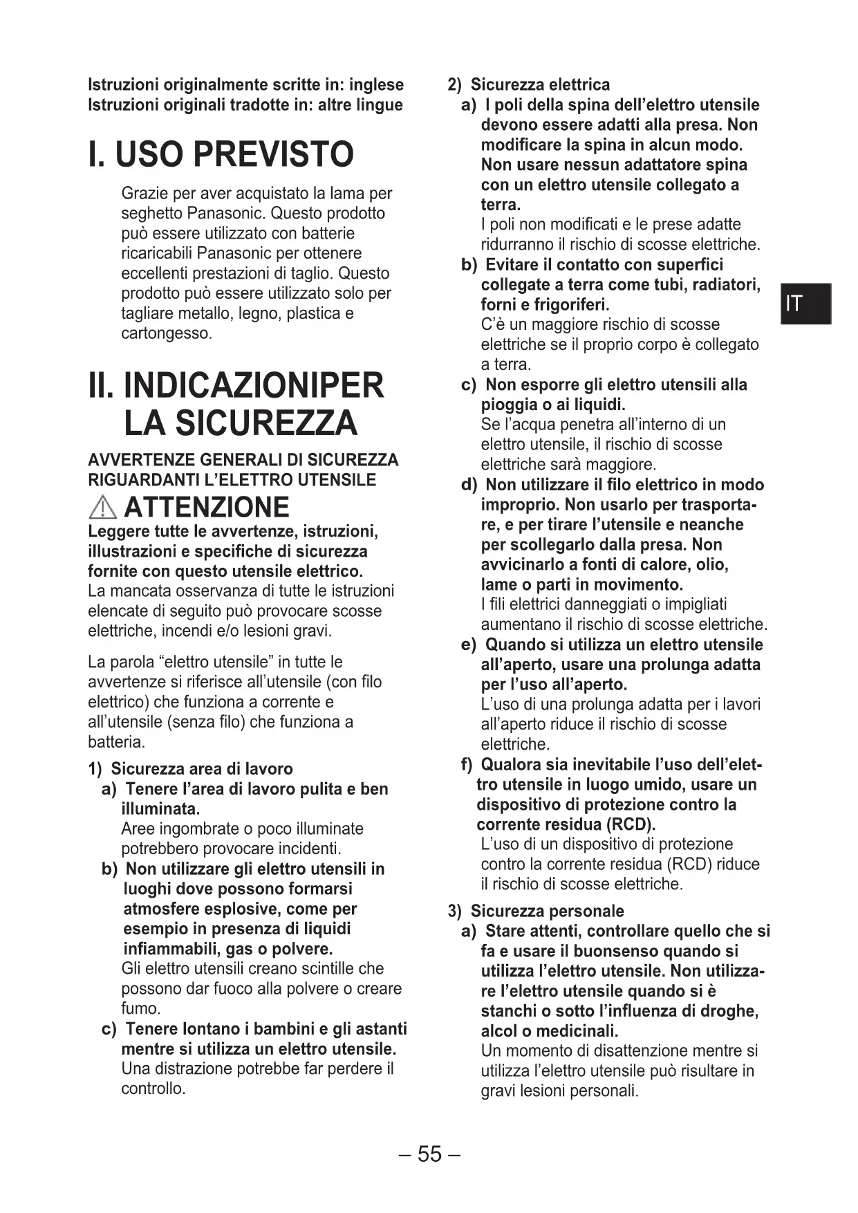 ATTENZIONE Leggere tutte le avvertenze, istruzioni, illustrazioni e speciche di sicurezza fornite con questo utensile elettrico. La mancata osservanza di tutte le istruzioni elencate di seguito può provocare scosse elettriche, incendi e/o lesioni gravi. La parola “elettro utensile” in tutte le avvertenze si riferisce all’utensile (con lo elettrico) che funziona a corrente e all’utensile (senza lo) che funziona a batteria.