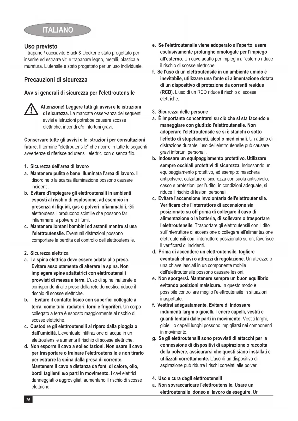 4. Uso e cura degli elettroutensili