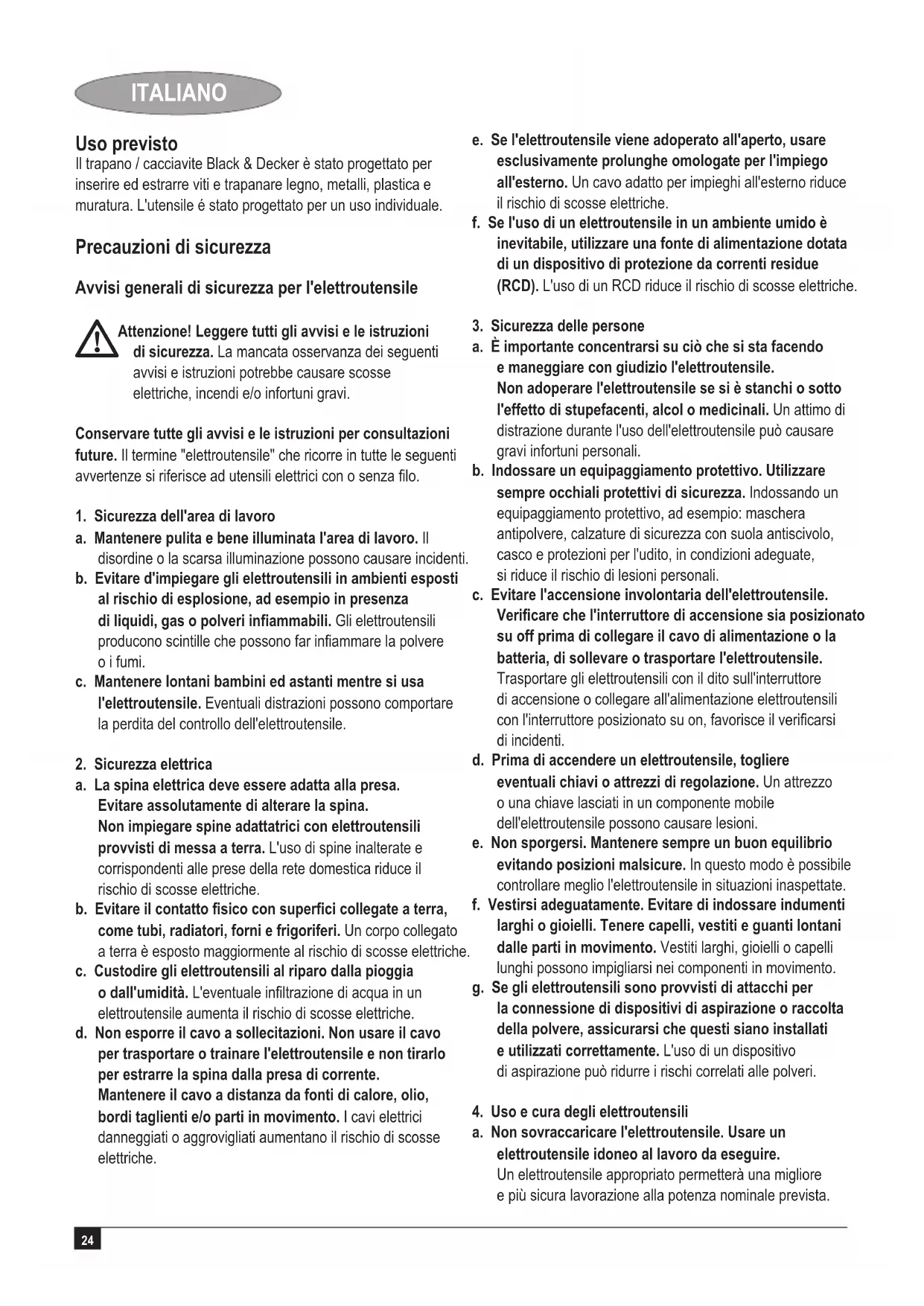 4. Uso e cura degli elettroutensili