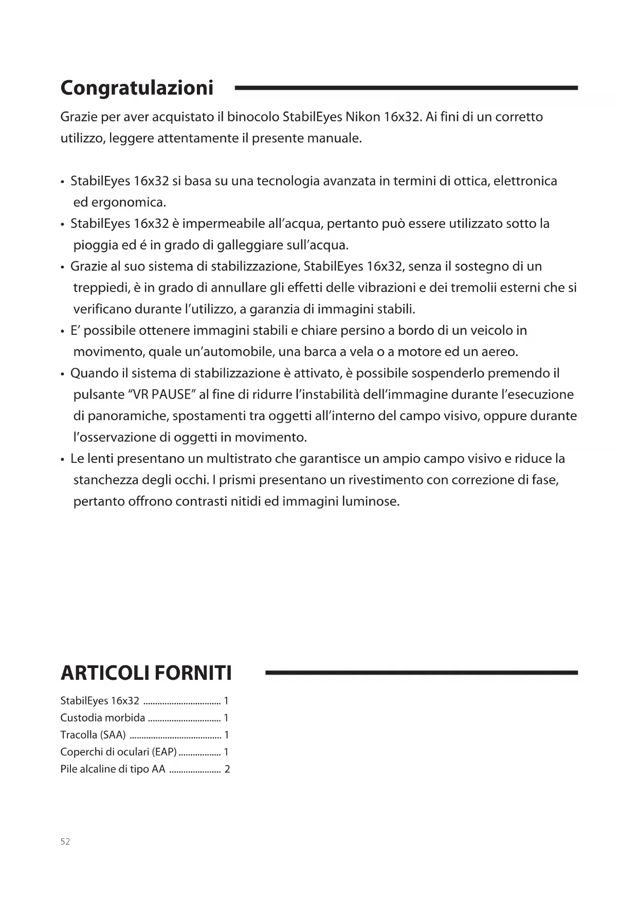 MANUALE UTENTE StabilEyes 16x32 NIKON
