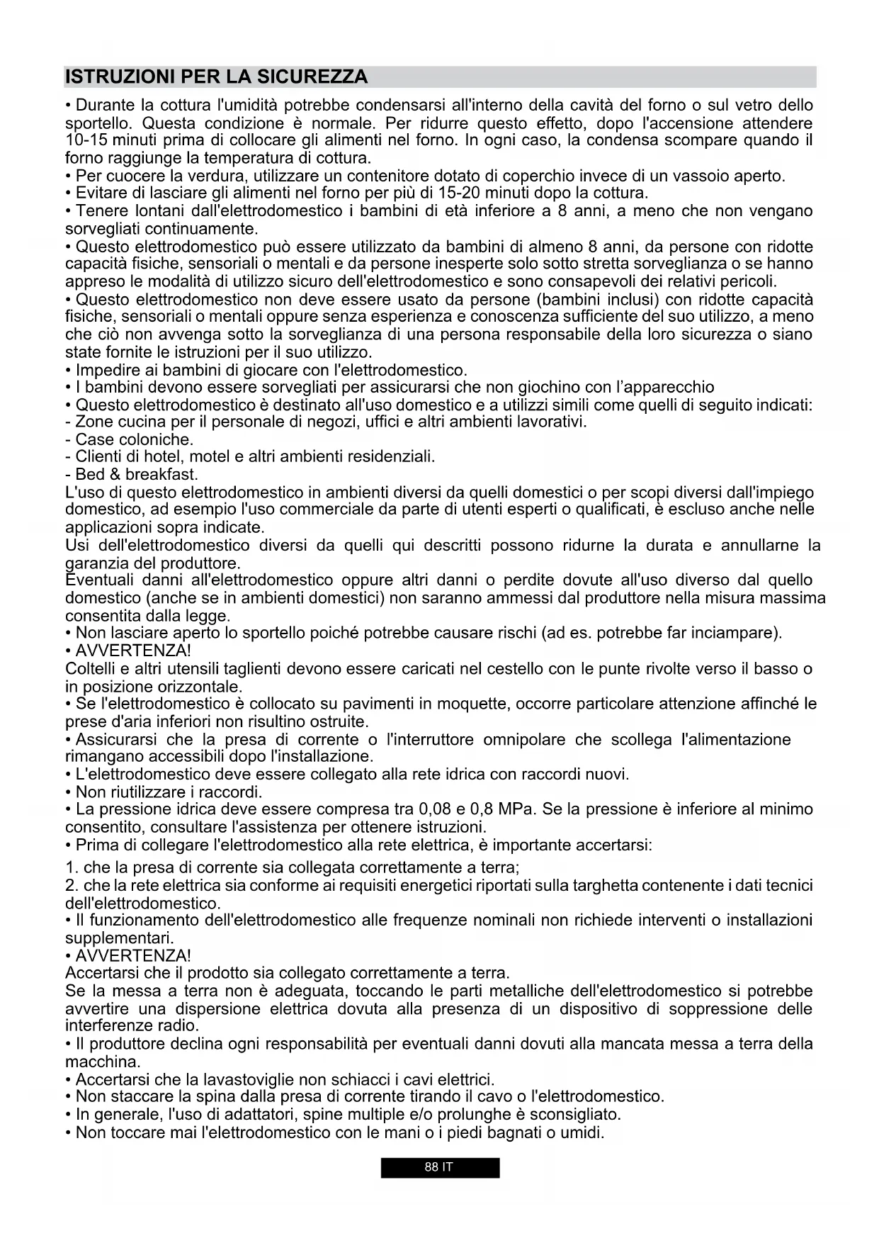 - Non toccare mai l'elettrodomestico con le mani o i piedi bagnati o umidi.ISTRUZIONI PER LA SICUREZZA 89 IT