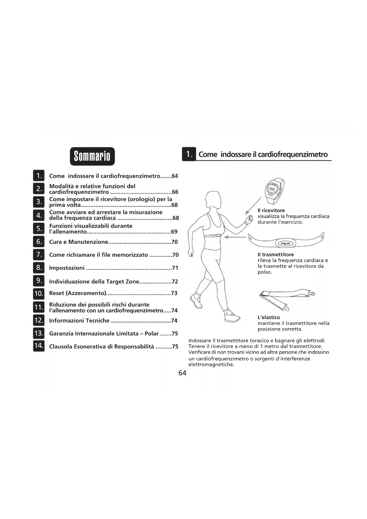 - Riduzione dei possibili rischi durantel'allenamento con un cardiofrequenzimetro p. 74