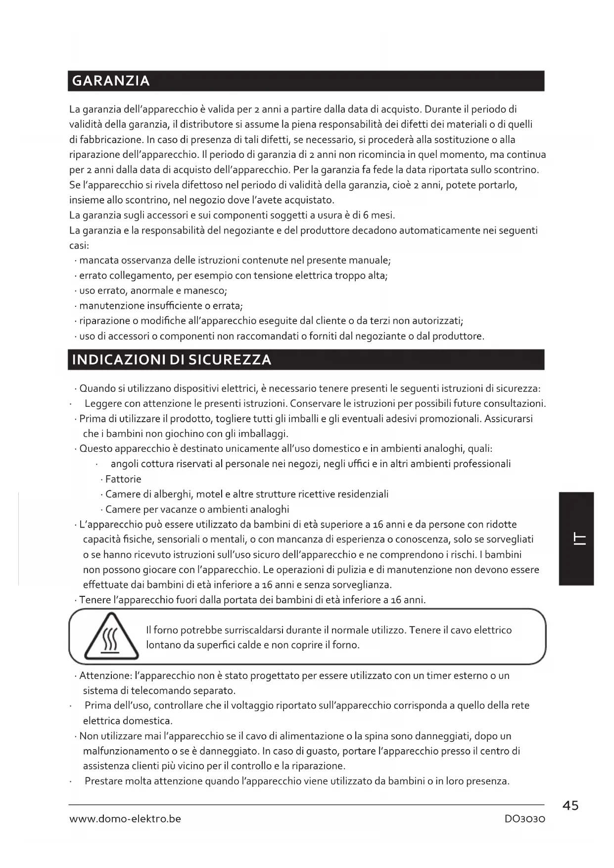 MANUALE UTENTE DO3030 DOMO
