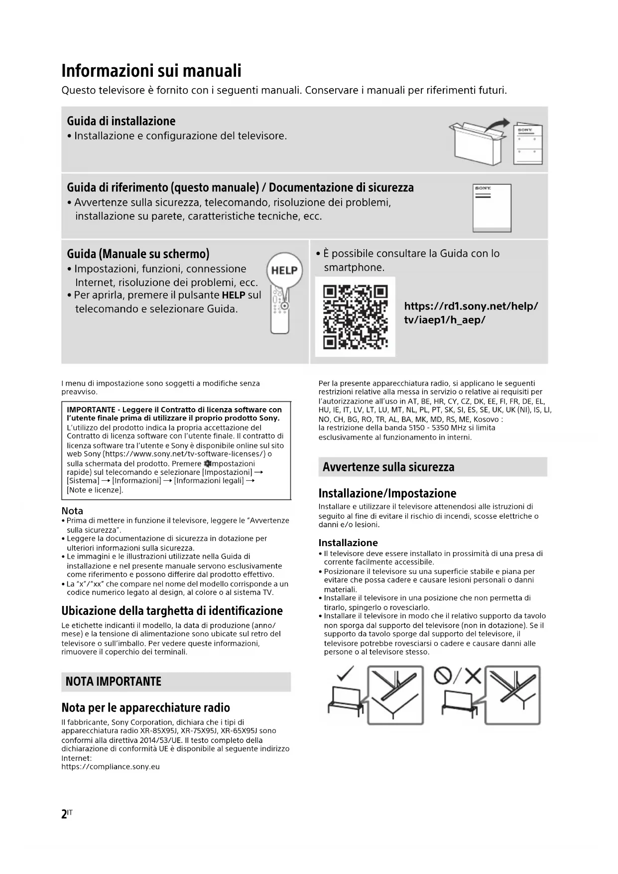 Scarica le istruzioni per il tuo Televisore in formato PDF gratuitamente! Trova il tuo manuale Bravia XR65X95J - SONY e riprendi in mano il tuo dispositivo elettronico. In questa pagina sono pubblicati tutti i documenti necessari per l'utilizzo del tuo dispositivo. Bravia XR65X95J del marchio SONY.