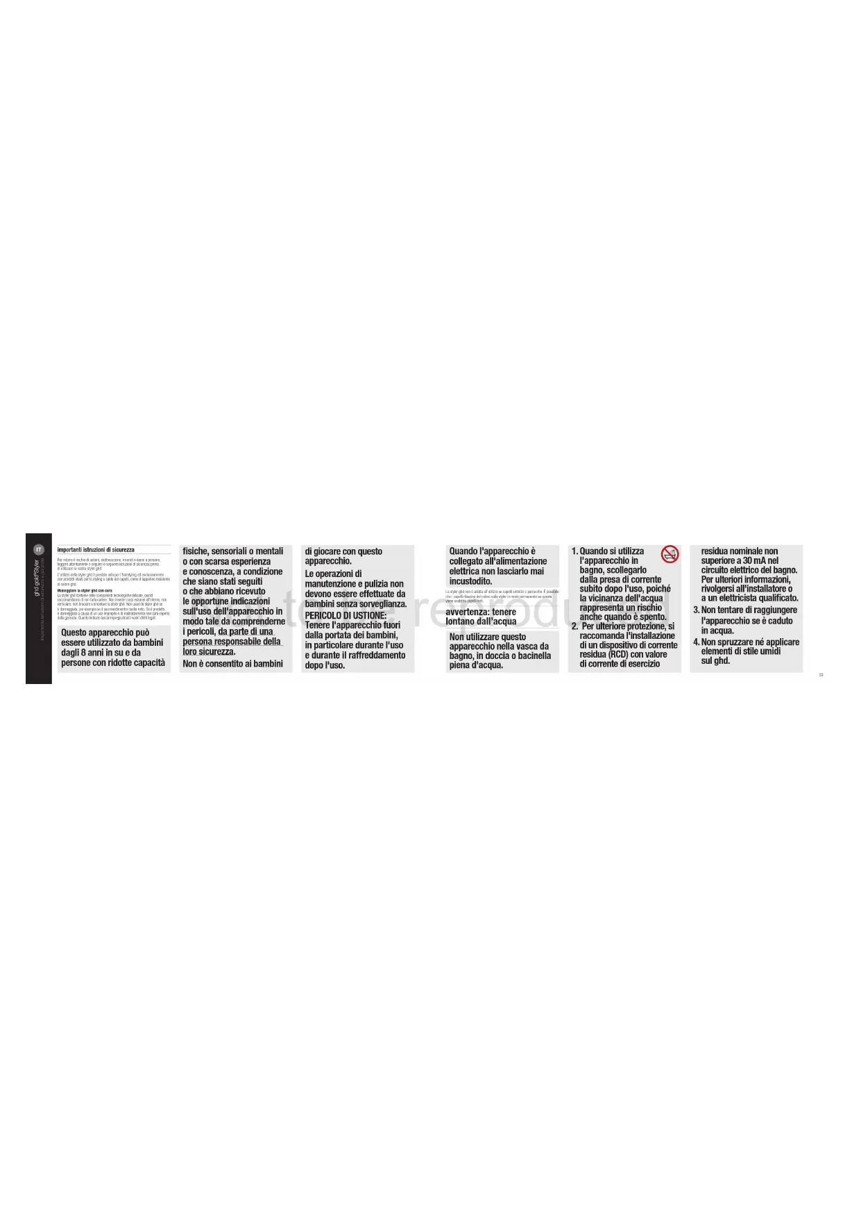 raccomanda l'installazione di un dispositivo di corrente residua (RCD) con valore di corrente di esercizio residua nominale non superiore a 30 mA nel circuito elettrico del bagno. Per ulteriori informazioni, rivolgersi all'installatore o a un elettricista qualicato.