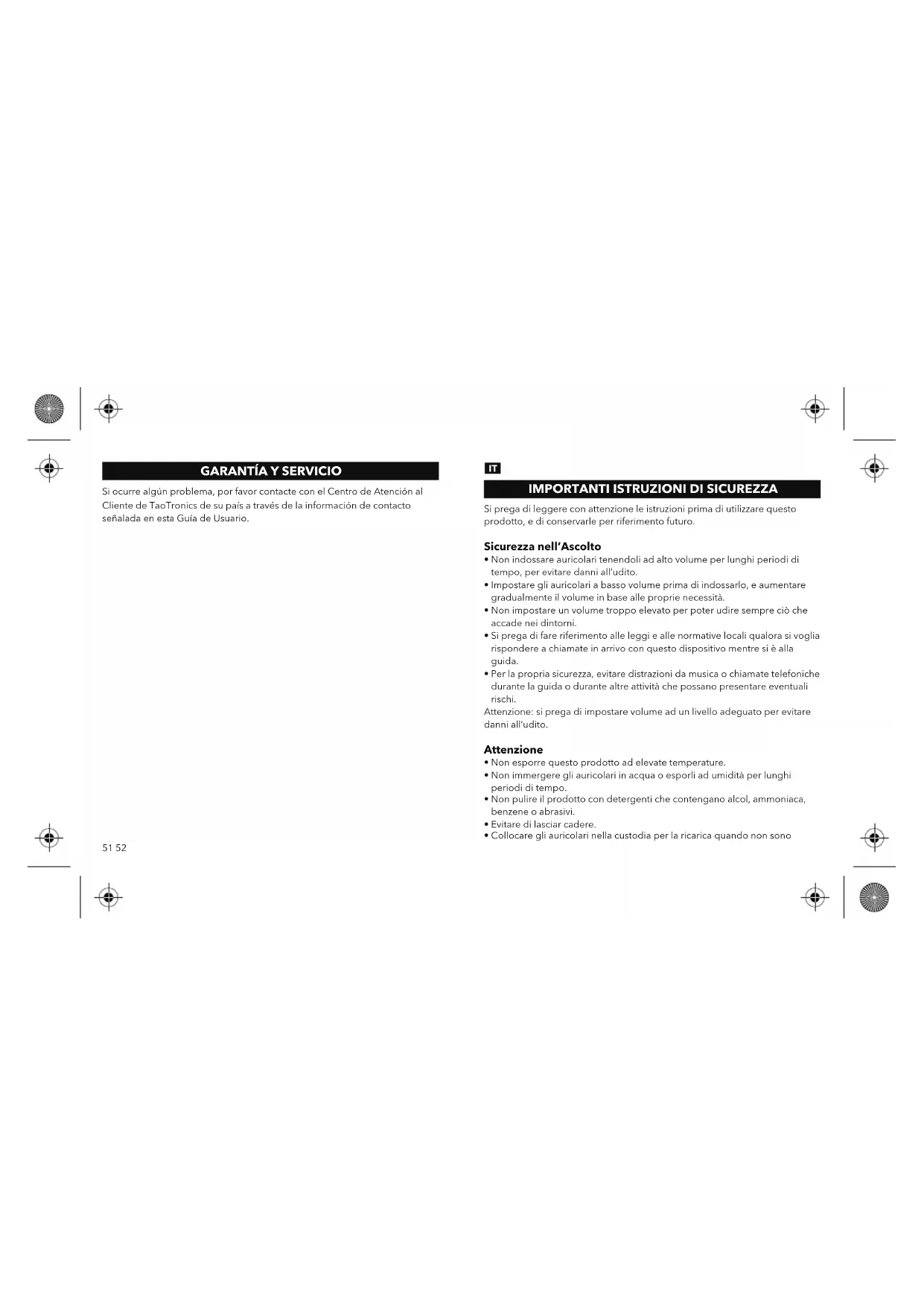 Si prega di leggere con attenzione le istruzioni prima di utilizzare questo prodotto, e di conservarle per riferimento futuro. Sicurezza nell’Ascolto