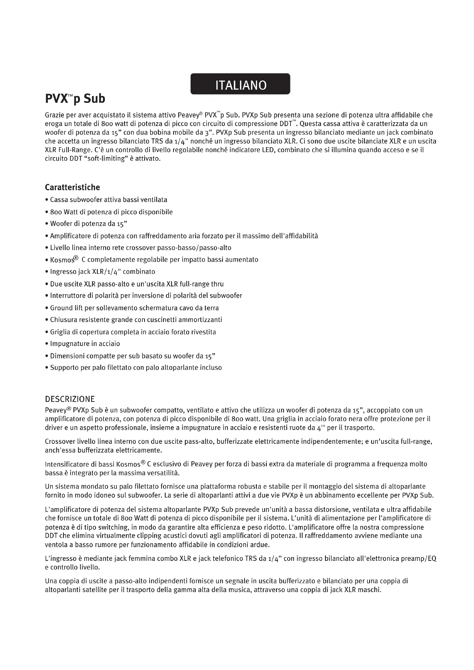 PVXp Sub - Subwoofer PEAVEY - Manuale utente e istruzioni gratuiti