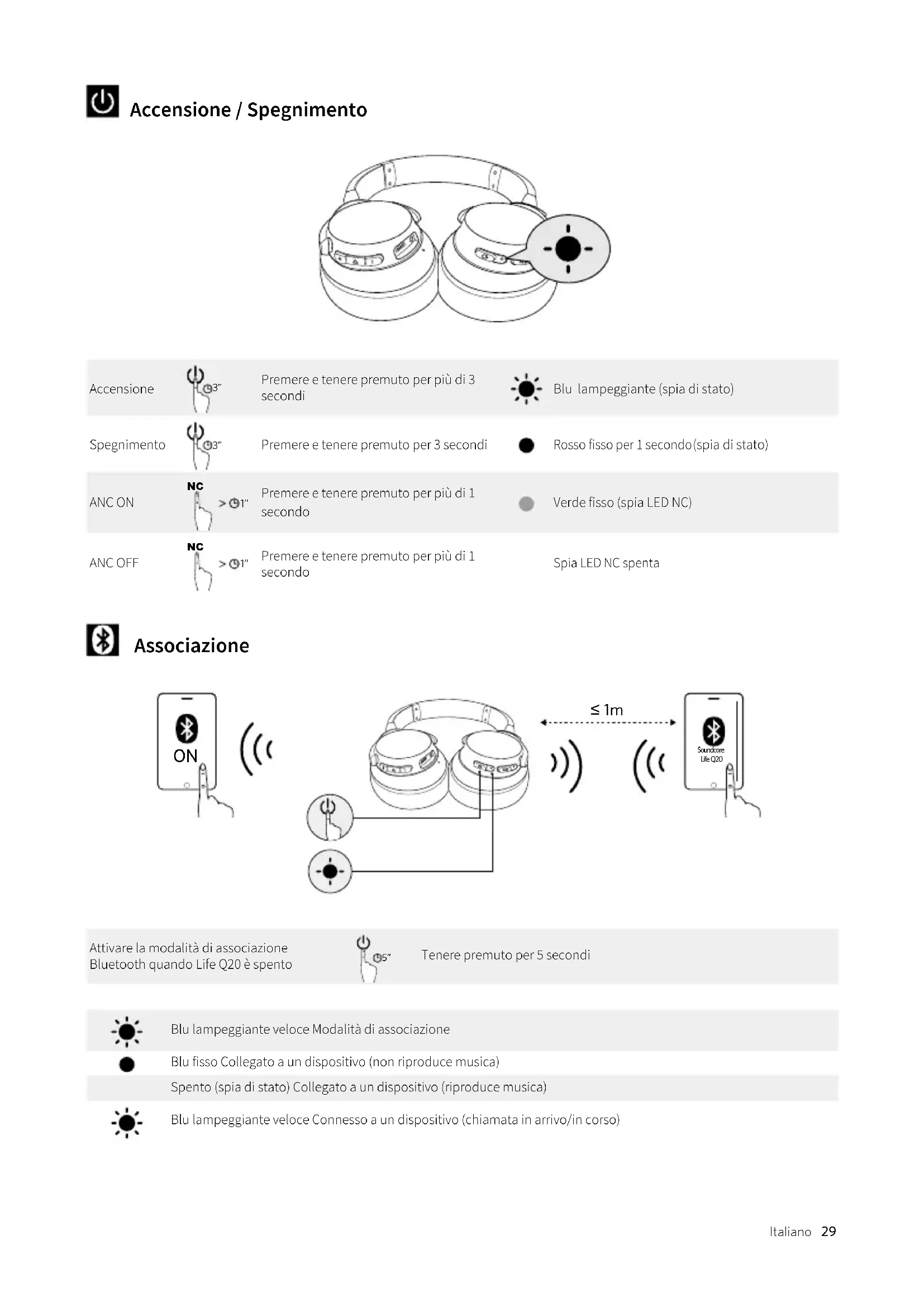 ≤ 1m Soundcore Life Q20 Attivare la modalità di associazione Bluetooth quando Life Q20 è spento