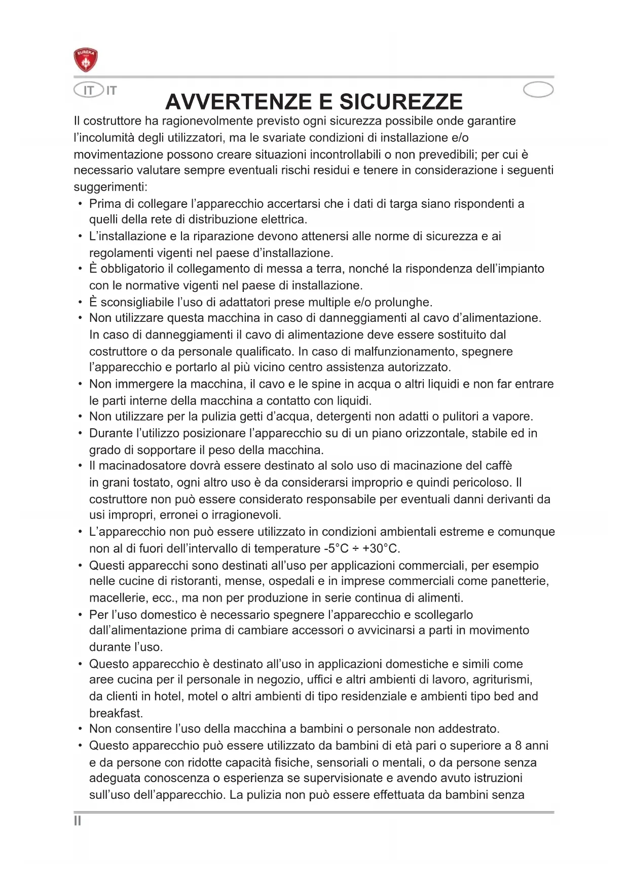 MANUALE UTENTE Mignon Classico EUREKA