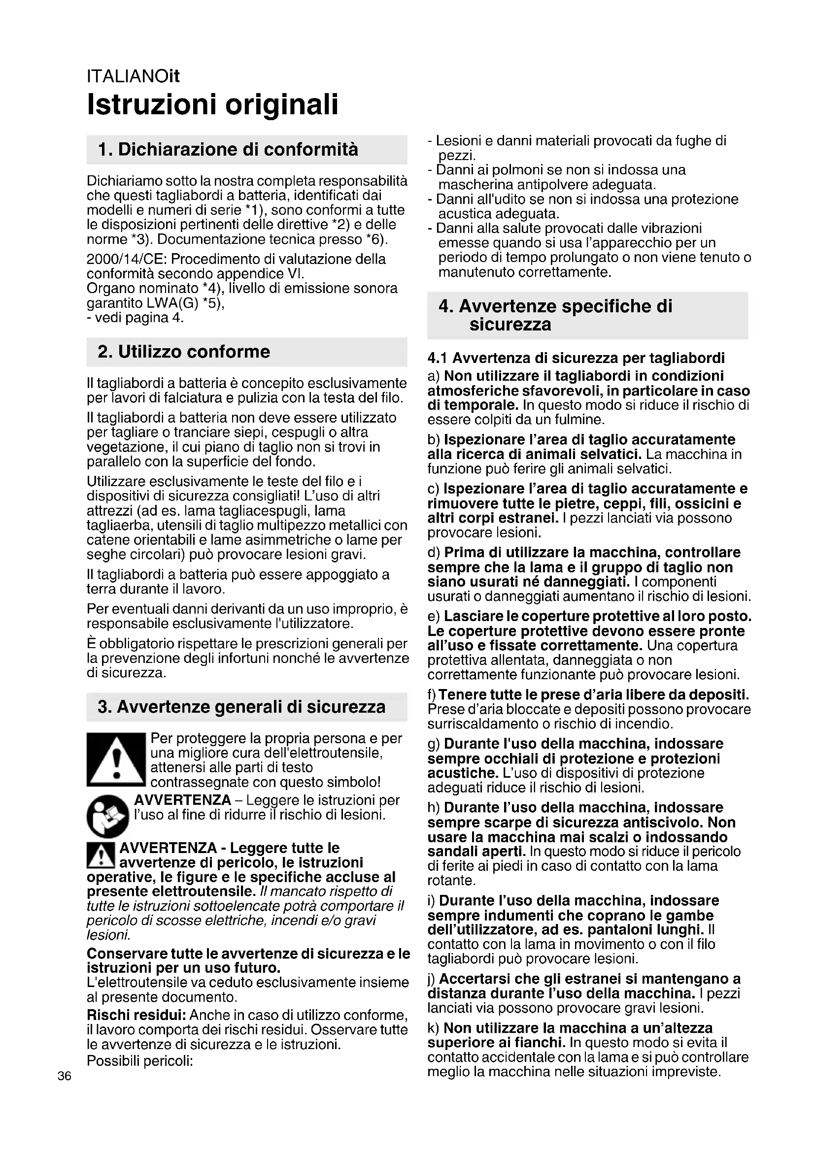4.1 Avvertenza di sicurezza per tagliabordi