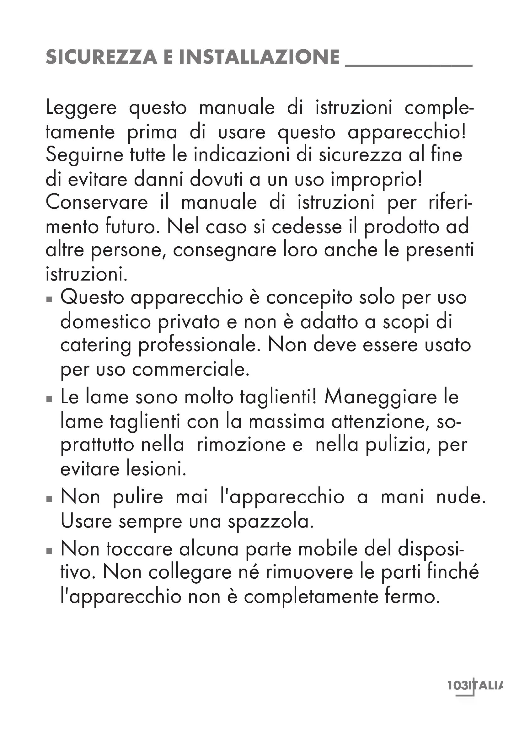 Le lame sono molto taglienti! Maneggiare le lame taglienti con la massima attenzione, so- prattutto nella rimozione e nella pulizia, per evitare lesioni.