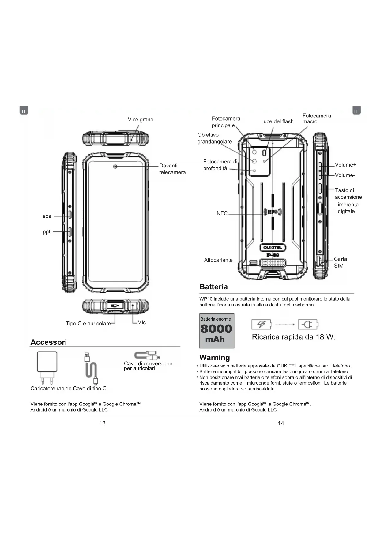 WP10 - Smartphone OUKITEL - Manuale utente e istruzioni gratuiti