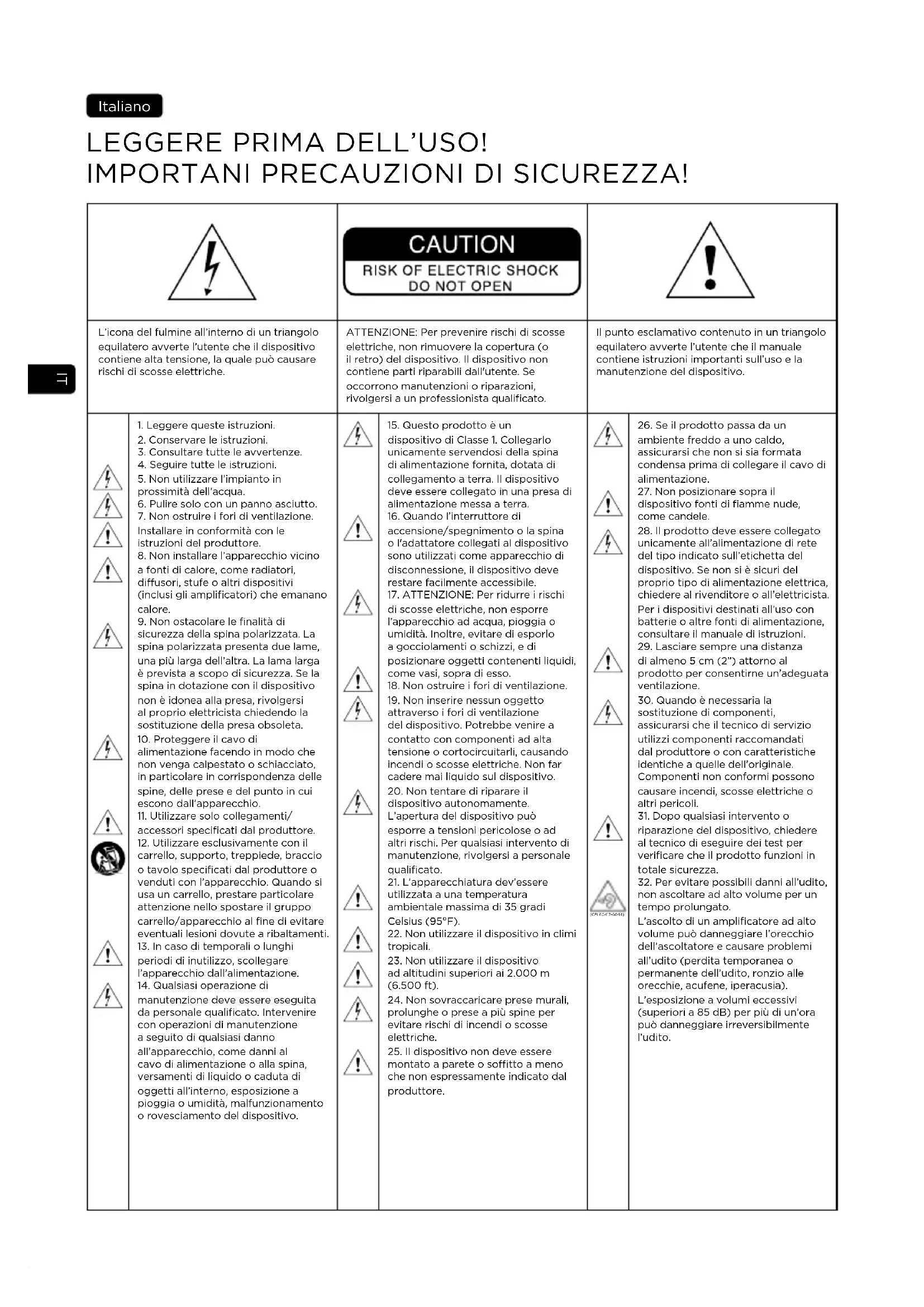 32. Per evitare possibili danni all’udito,