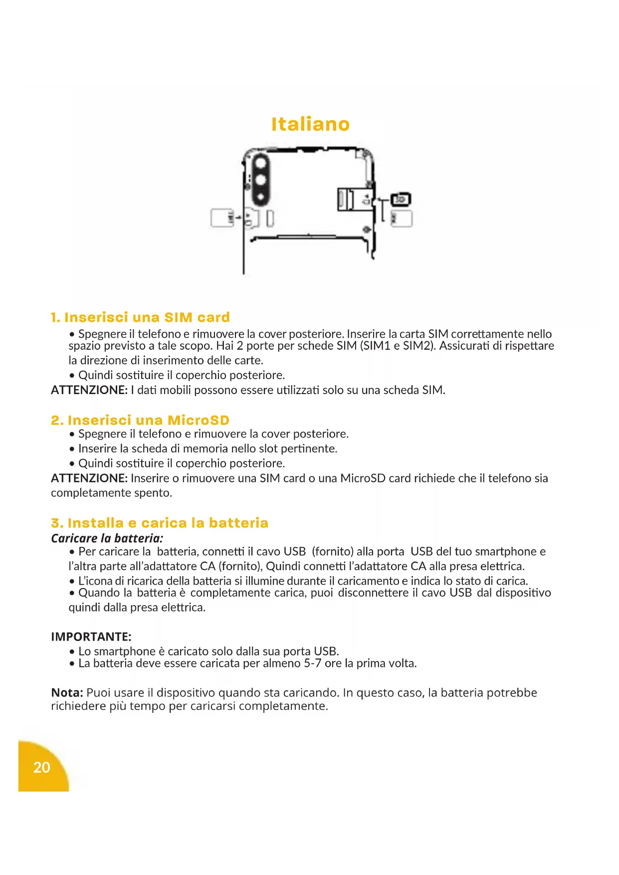 - Lo smartphone viene caricato solo tramite la porta USB.