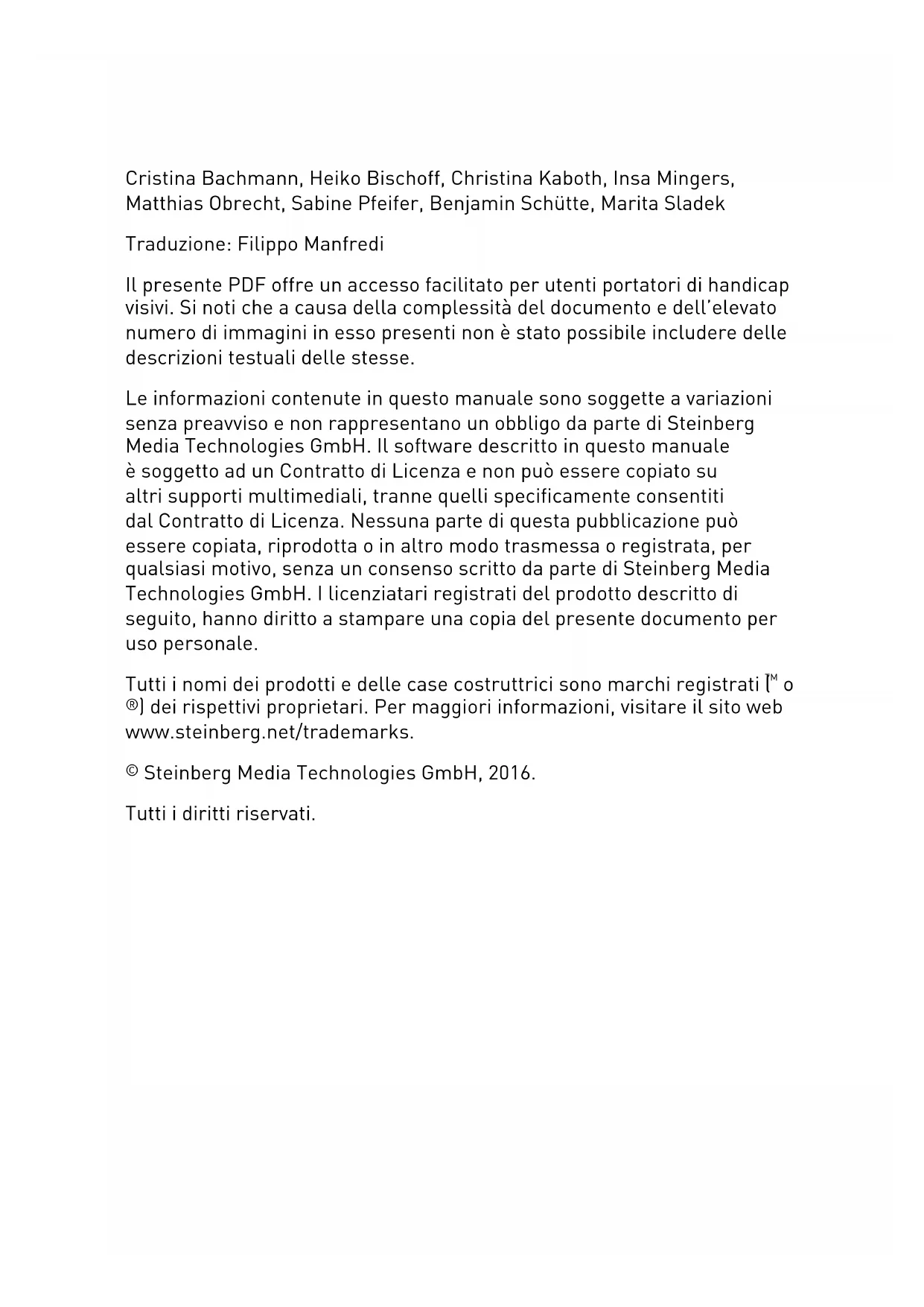 ) dei rispettivi proprietari. Per maggiori informazioni, visitare il sito web www.steinberg.net/trademarks.