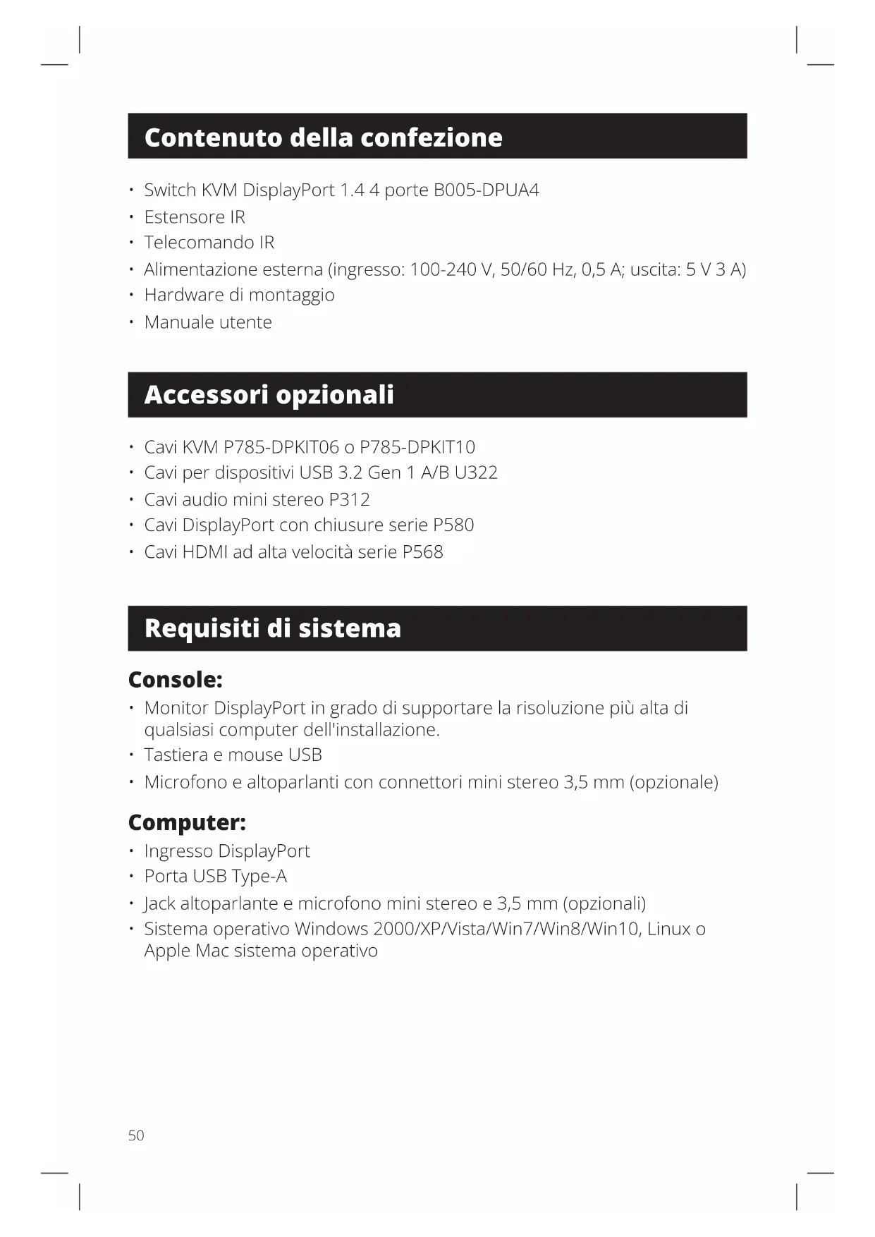 - Sistema operativo Windows 2000/XP/Vista/Win7/Win8/Win10, Linux o Apple Mac sistema operativo Contenuto della confezione Accessori opzionali Requisiti di sistema51