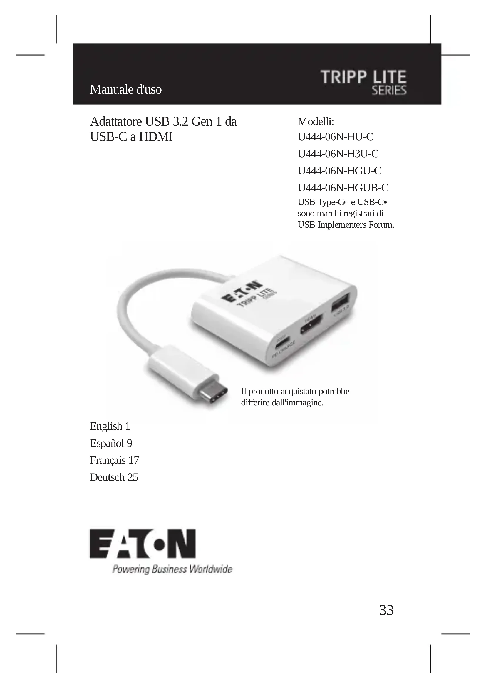 MANUALE UTENTE U44406NHGUBC Tripp Lite
