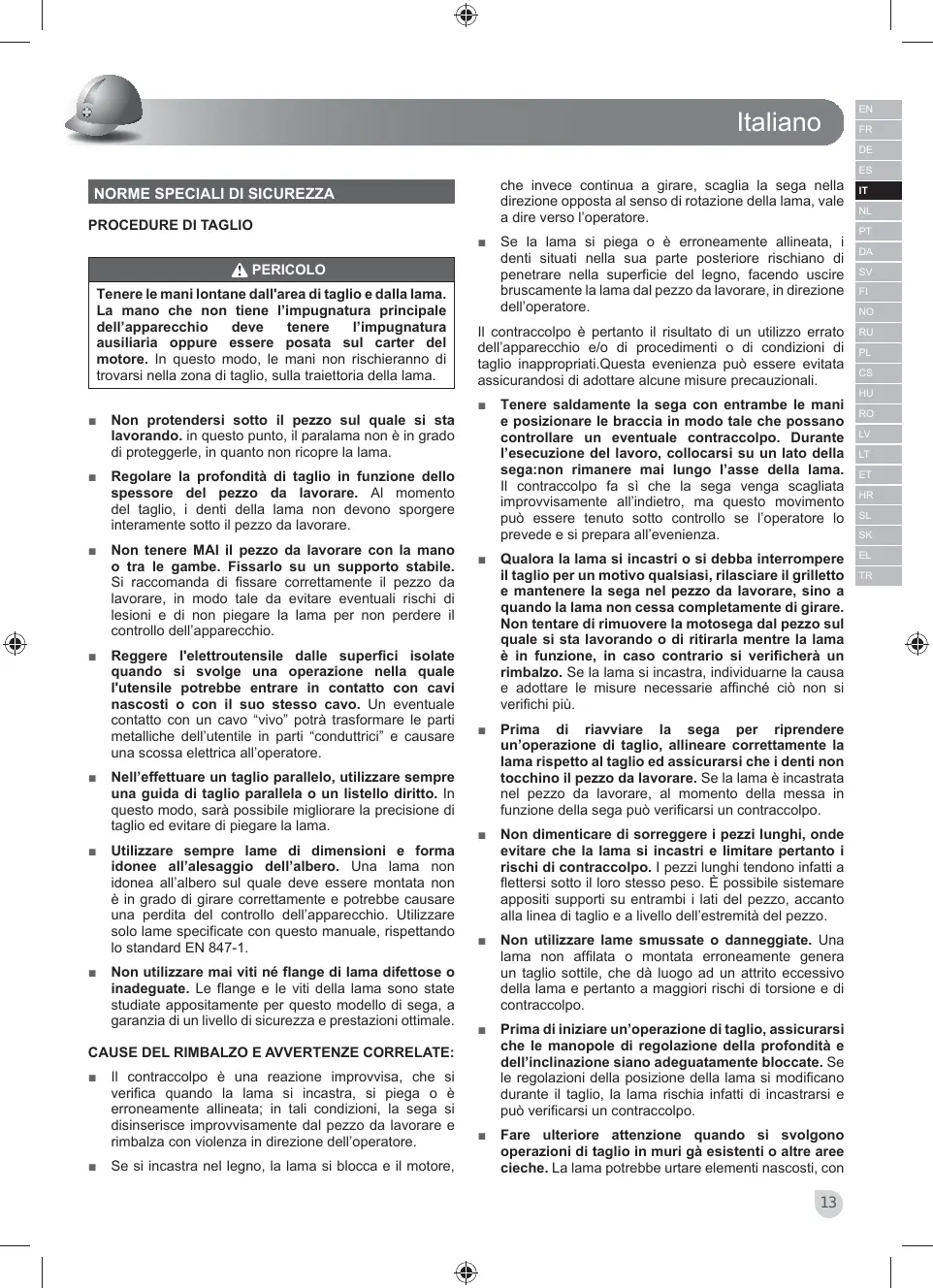 che invece continua a girare, scaglia la sega nella direzione opposta al senso di rotazione della lama, vale a dire verso l’operatore.