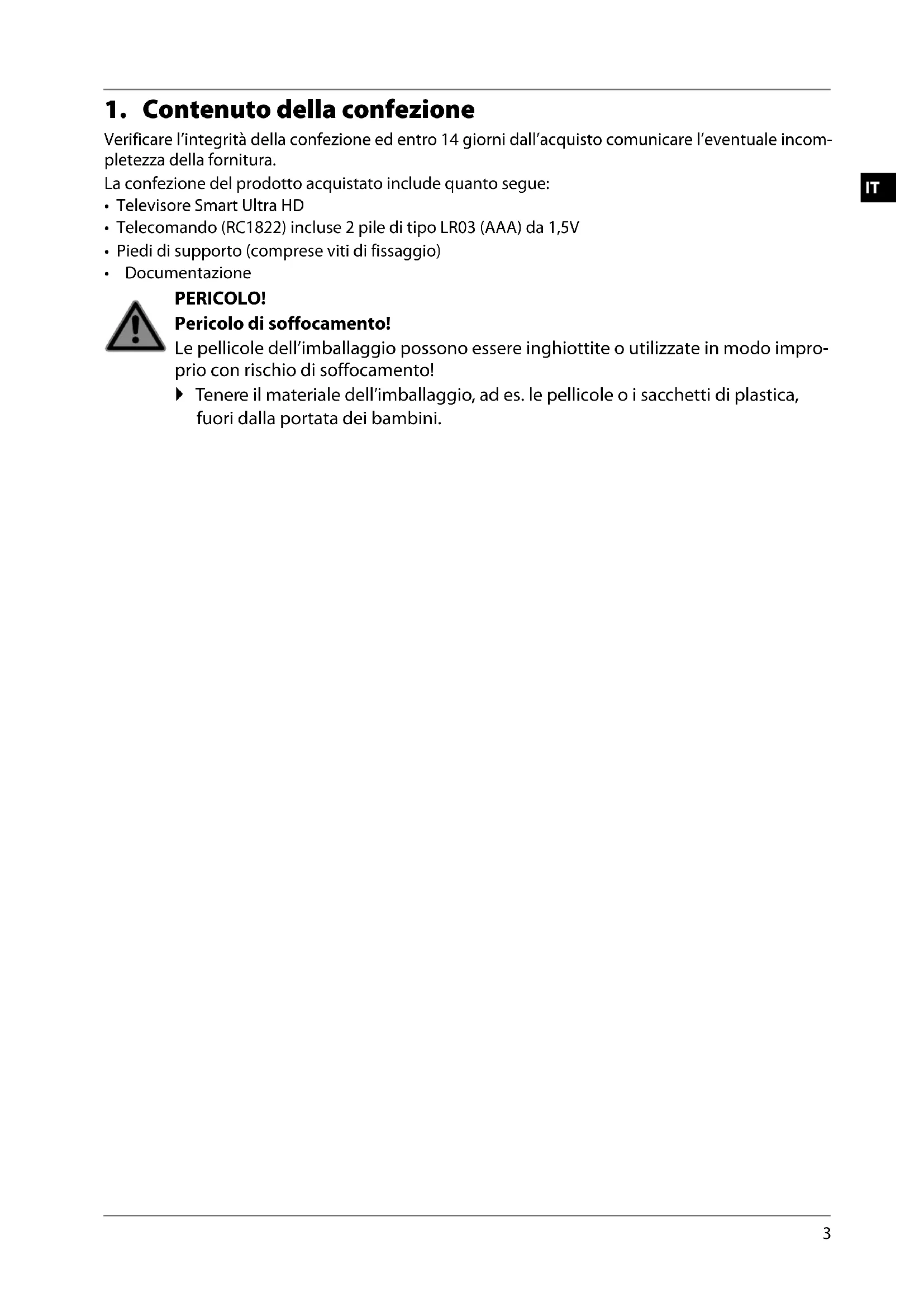 1. Contenuto della confezione