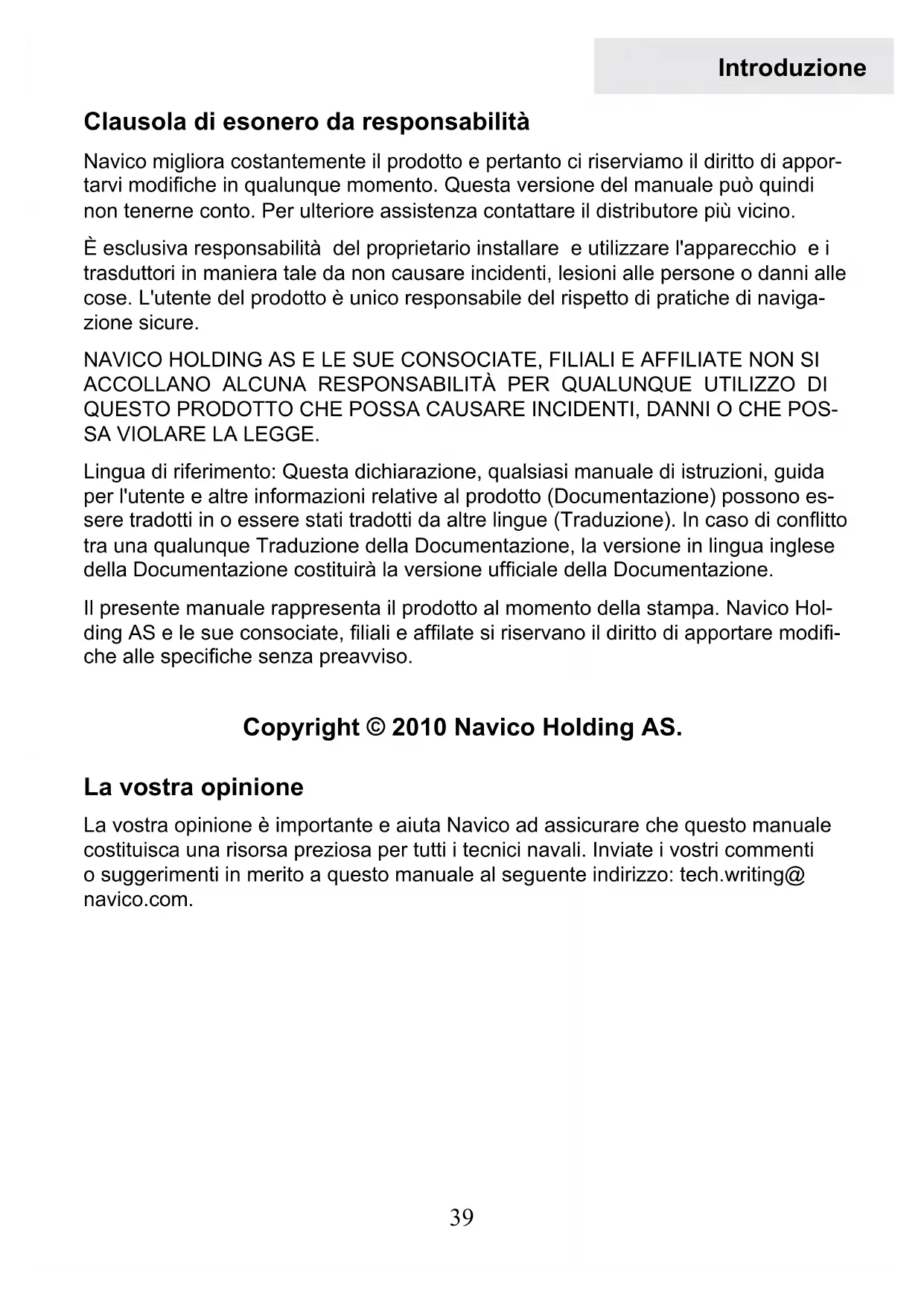 Contrôles par èches directionnelles iPod, iPhone, stockage en masse USB Radio SIRIUS, AM/FM Parcourir les favoris en avant Émetteur suivant (AM/FM — par- courir en avant) Émetteur précédent (AM/FM — parcourir en arrière) Parcourir les favoris en arrière Source audio Morceau précédent Morceau suivant Play / Pause REMARQUE : Lorsque vous écoutez la radio AM/FM, appuyez plu- sieurs secondes sur les èches gauche ou droite pour passer du mode « parcourir » au mode « recherche ». REMARQUE : Lorsque vous écoutez l'audio à partir d'un iPod ou un dispositif USB de stockage en masse, vous pouvez reculer ou avancer rapidement un morceau à l'aide des èches directionnelles gauche et droite.36 Utilisation Source audio La page source audio afche le menu de la source audio sélectionnée à l'écran de votre unité d'afchage. Cela permet d'apporter des réglages aux sources audio en utilisant leurs menus ou structures de chiers propriétaires (USB). Sélection d'une source audio Vous pouvez sélectionner les sources d'audio par l'intermédiaire du menu de SonicHub ou à l'aide des touches logicielles de votre unité d'afchage. Vous devez sélectionner une source audio pour pouvoir écouter l'audio de SonicHub. La source « Mic » désigne une entrée haute tension. Elle permet la diffusion de messages de porte-voix par l'intermédiaire du système audio en reproduisant le porte-voix sur le LVR-880 de Lowrance.37 Réglages Sélection de favoris Vous pouvez sélectionner des émetteurs radio SIRIUS et AM/FM favoris, an de les retrouver plus aisément par la suite. Favoris SIRIUS Sélectionnez vos émetteurs favoris à partir de la liste « All Channels » (Émetteurs disponibles). Vous pouvez accéder à la liste « All Channels » (Émetteurs disponi- bles) à partir du menu de Sonichub. La liste « All Channels » contient tous les émetteurs disponibles, y compris les émetteurs qui ne sont pas compris dans votre abonnement. Vous ne pouvez pas ajouter les émetteurs auxquels vous n'êtes pas abonné à votre liste de favoris. Consultez votre manuel LWX-1 pour plus d'informations. Favoris AM/FM Vous pouvez ajouter des émetteurs à votre liste de favoris à partir du menu de SonicHub. Vous devez sélectionner l'émetteur désiré pour pouvoir l'ajouter à la liste de favoris. Page « SIRIUS favorites » (Favoris SI- RIUS) Page « FM favorites » (Favoris FM)38 Réglages Sorties audio Votre unité dispose de trois sorties audio ; deux pour les hauts-parleurs, et une pour le amplicateur et 1 pour le sub-woofer. Les réglages de volume, de balance et d'équilibre avant-arrière sont les mêmes pour toutes les sorties. Sorties audio de SonicHub Sortie audio 1 Haut-parleurs frontaux Sortie audio 2 Haut-parleurs arrières (non inclus) Sortie audio 3 Sortie amplicateur ; sortie sub-woofer39 Introduzione Clausola di esonero da responsabilità Navico migliora costantemente il prodotto e pertanto ci riserviamo il diritto di appor- tarvi modiche in qualunque momento. Questa versione del manuale può quindi non tenerne conto. Per ulteriore assistenza contattare il distributore più vicino. È esclusiva responsabilità del proprietario installare e utilizzare l'apparecchio e i trasduttori in maniera tale da non causare incidenti, lesioni alle persone o danni alle cose. L'utente del prodotto è unico responsabile del rispetto di pratiche di naviga- zione sicure. NAVICO HOLDING AS E LE SUE CONSOCIATE, FILIALI E AFFILIATE NON SI ACCOLLANO ALCUNA RESPONSABILITÀ PER QUALUNQUE UTILIZZO DI QUESTO PRODOTTO CHE POSSA CAUSARE INCIDENTI, DANNI O CHE POS- SA VIOLARE LA LEGGE. Lingua di riferimento: Questa dichiarazione, qualsiasi manuale di istruzioni, guida per l'utente e altre informazioni relative al prodotto (Documentazione) possono es- sere tradotti in o essere stati tradotti da altre lingue (Traduzione). In caso di conitto tra una qualunque Traduzione della Documentazione, la versione in lingua inglese della Documentazione costituirà la versione ufciale della Documentazione. Il presente manuale rappresenta il prodotto al momento della stampa. Navico Hol- ding AS e le sue consociate, liali e aflate si riservano il diritto di apportare modi- che alle speciche senza preavviso. Copyright © 2010 Navico Holding AS. La vostra opinione La vostra opinione è importante e aiuta Navico ad assicurare che questo manuale costituisca una risorsa preziosa per tutti i tecnici navali. Inviate i vostri commenti o suggerimenti in merito a questo manuale al seguente indirizzo: tech.writing@ navico.com. Italiano40 Introduzione Dichiarazioni di conformità SonicHub Audio Server è conforme alle seguenti normative: FCC Parte 15 Sottoparte J Classe B• Conformità CE per EN60945• C - Tick• Per ulteriori informazioni, consultare il nostro sito Web: www.lowrance.com/it. Avvertimento Si avverte l'utente che qualsiasi cambiamento o modica non esplicitamente ap- provato dalla parte responsabile per la conformità può annullare il diritto di utilizzo dell'apparecchiatura dell'utente. Questo apparecchio è stato collaudato ed è stato trovato conforme con i limiti per dispositivi digitali di Classe B, ai sensi della Sezione 15 delle Norme FCC. Questi limiti sono previsti al ne di fornire una ragionevole protezione contro interferenze dannose in un'installazione residenziale. Questo apparecchio genera, utilizza e può emettere energia in radio frequenza e, se non installato e utilizzato nel rispetto delle istruzioni, può causare interferenze dannose alle comunicazioni radio. Tuttavia, non vi è garanzia che le interferenze non si verichino in particolari installazioni. Se que- sto apparecchio causa interferenze dannose alla ricezione radio o televisiva, effetto che può essere determinato accendendo e spegnendo l'apparecchio, si consiglia all'utente di tentare di correggere il problema effettuando una o più delle seguenti operazioni: Cambiare l'orientamento o la posizione dell'antenna ricevente. • Aumentare la distanz
