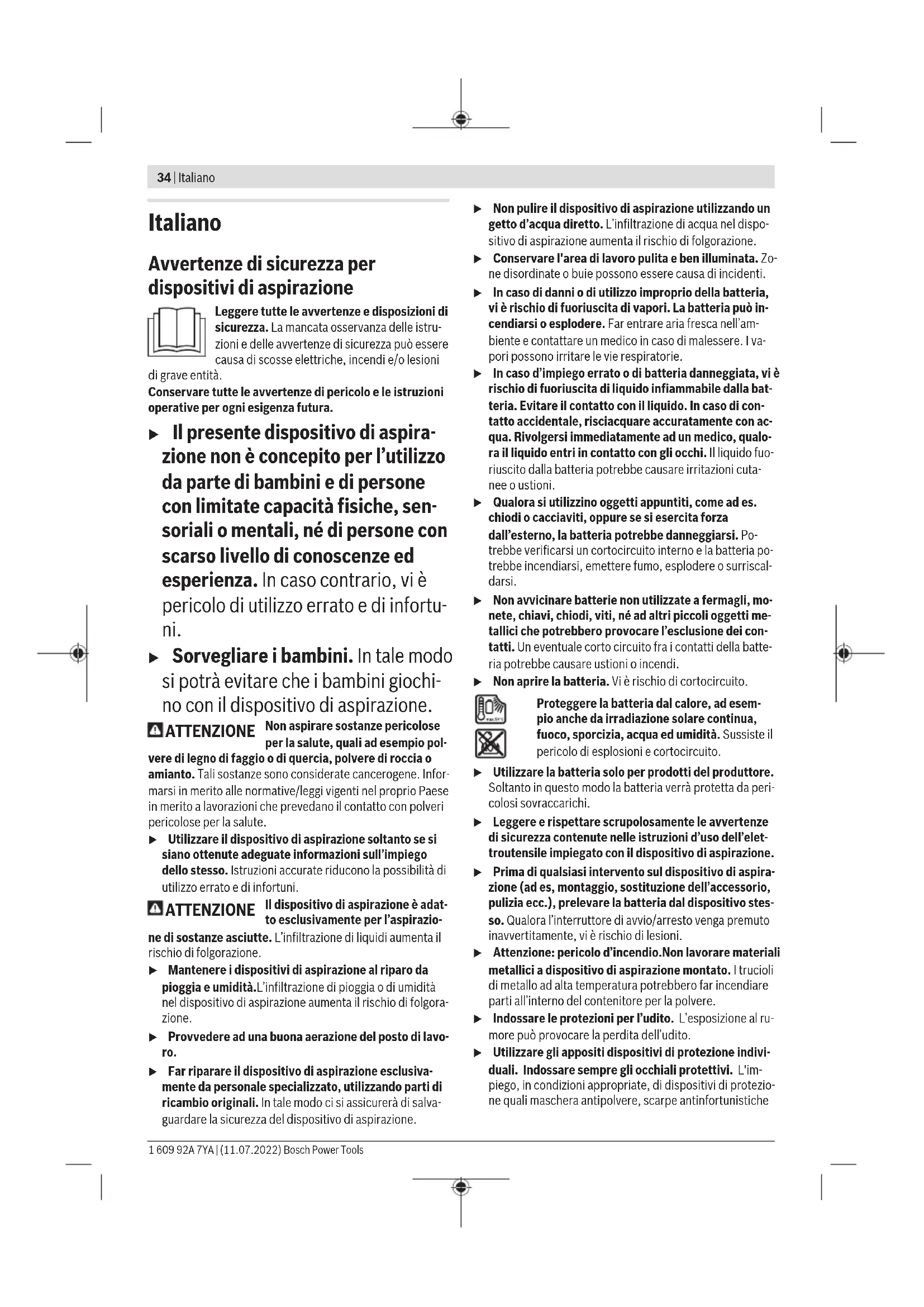 kg 2,2−3,2 Temperatura ambiente consi- gliata in fase di ricarica °C 0... +35 Temperatura ambiente con- sentita durante il funziona- °C –20... +50 Bosch Power Tools 1 609 92A 7YA | (11.07.2022)36 | Italiano Dispositivo di aspirazione GDE 18V-26 D mento