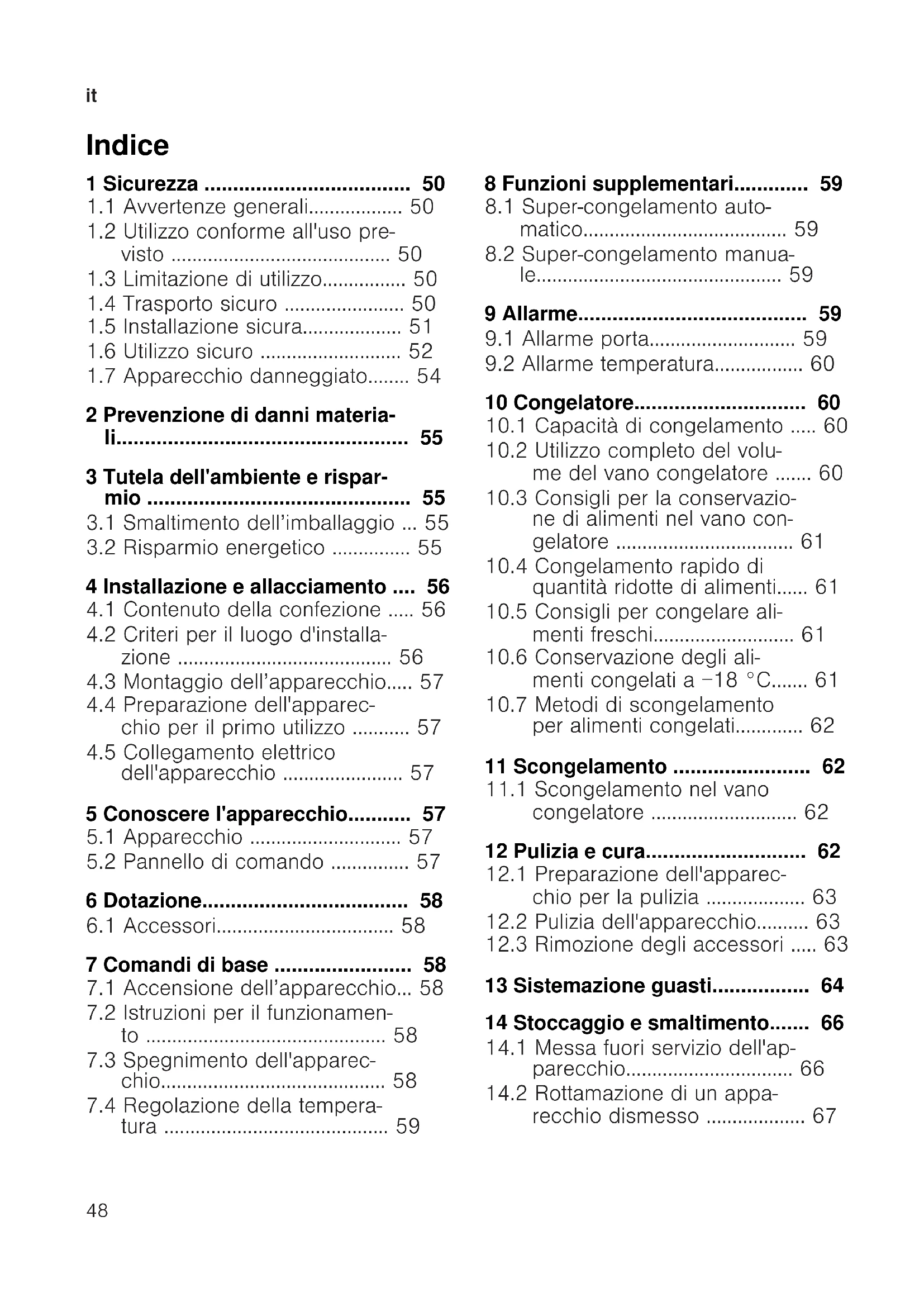 per alimenti congelati.............62 11 Scongelamento ........................62