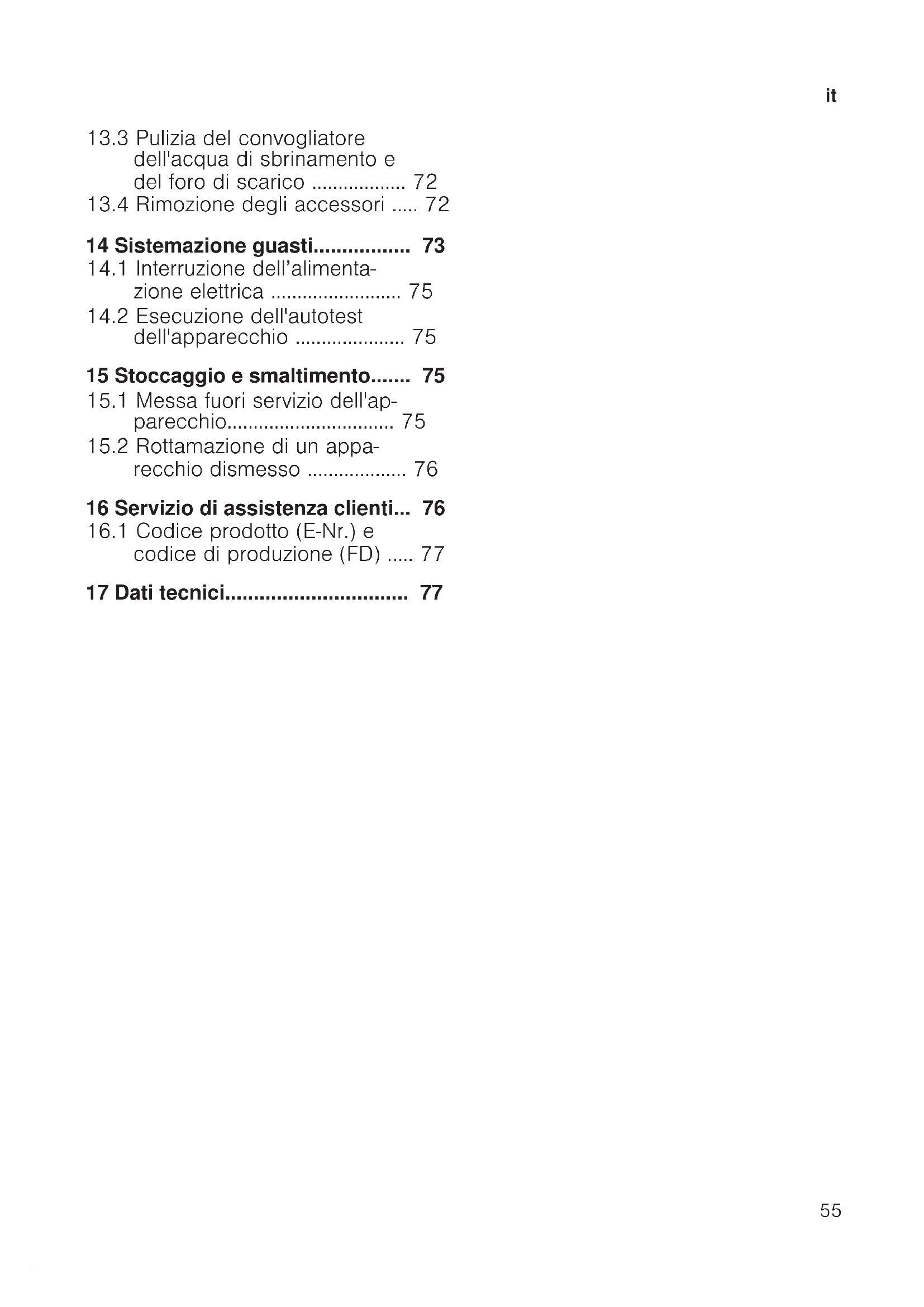 dell'apparecchio .....................75 15 Stoccaggio e smaltimento.......75