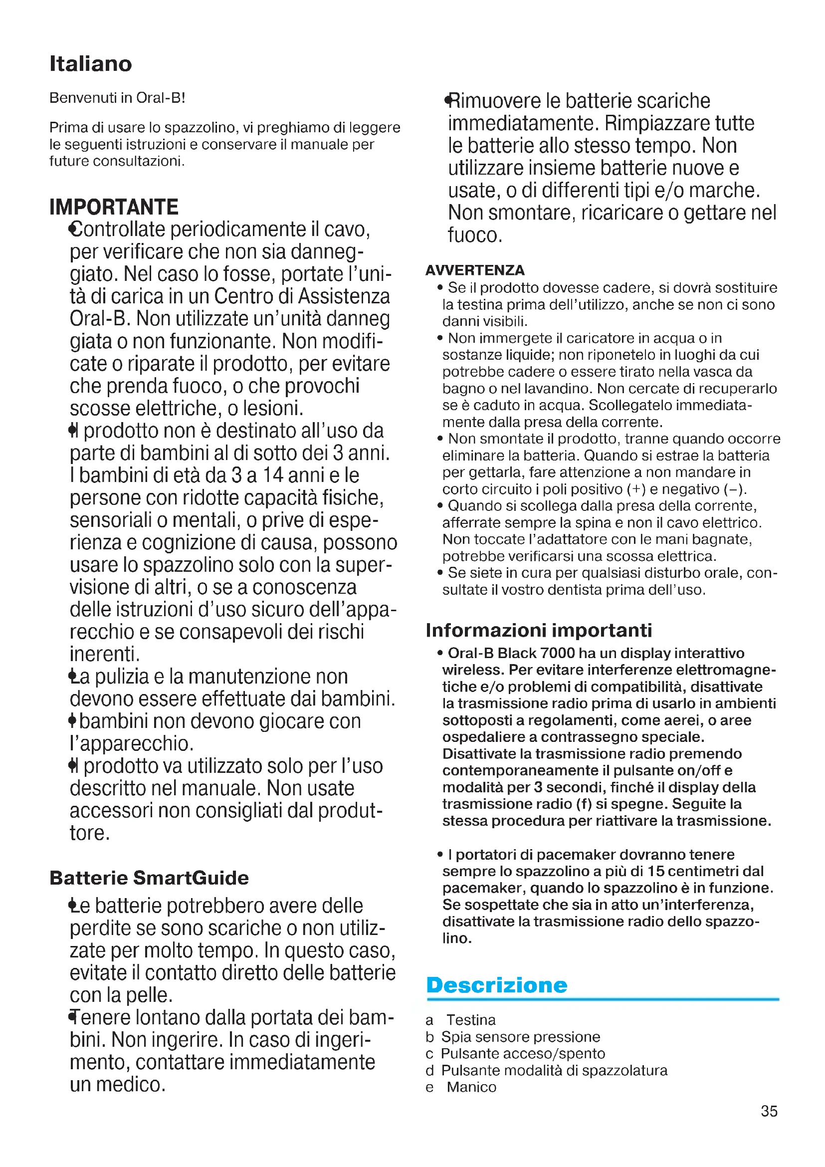 - Se siete in cura per qualsiasi disturbo orale, con- sultate il vostro dentista prima dell’uso. Informazioni importanti