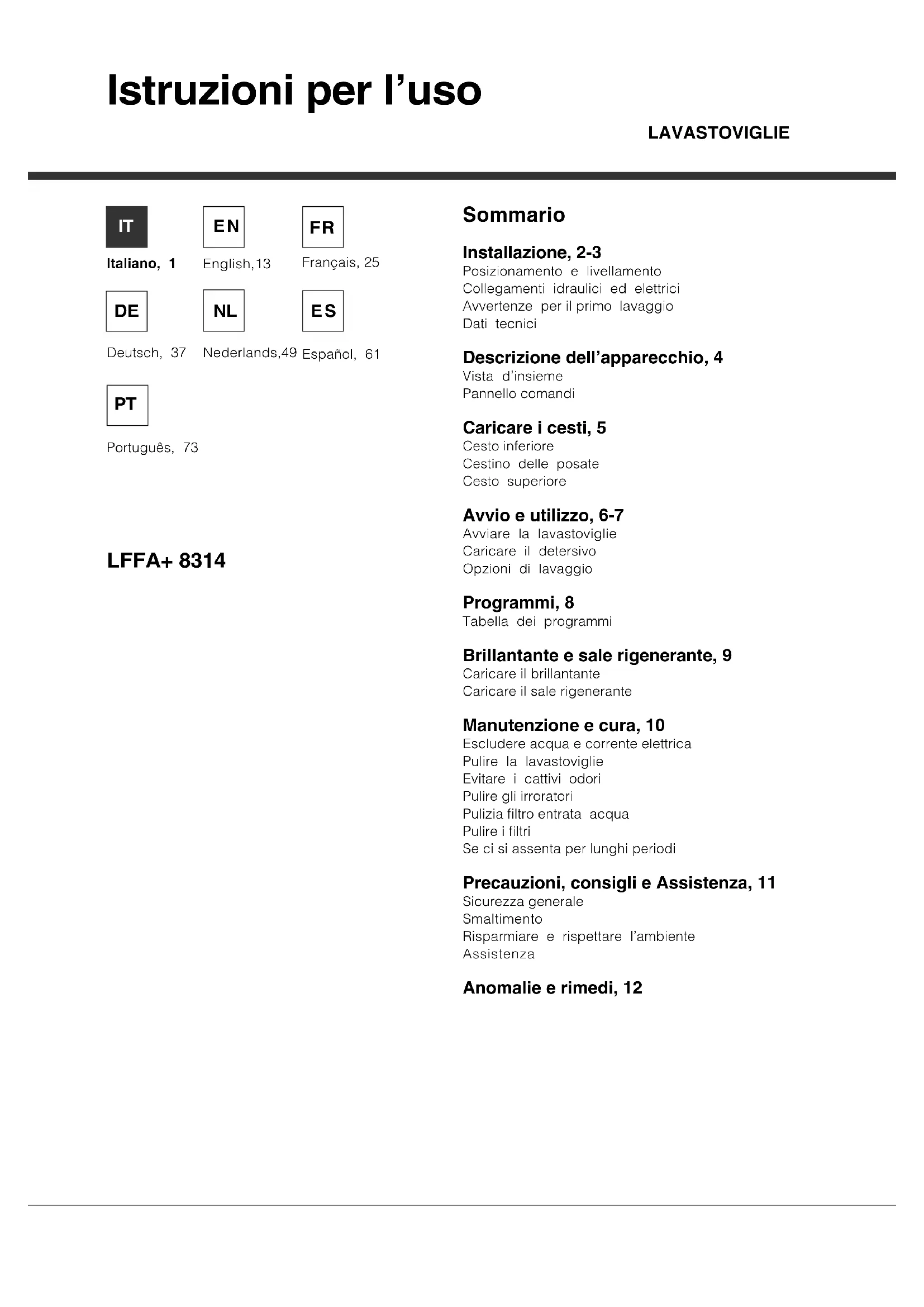 LFFA+ 8314 B EU - Lavastoviglie HOTPOINT - Manuale utente e istruzioni gratuiti