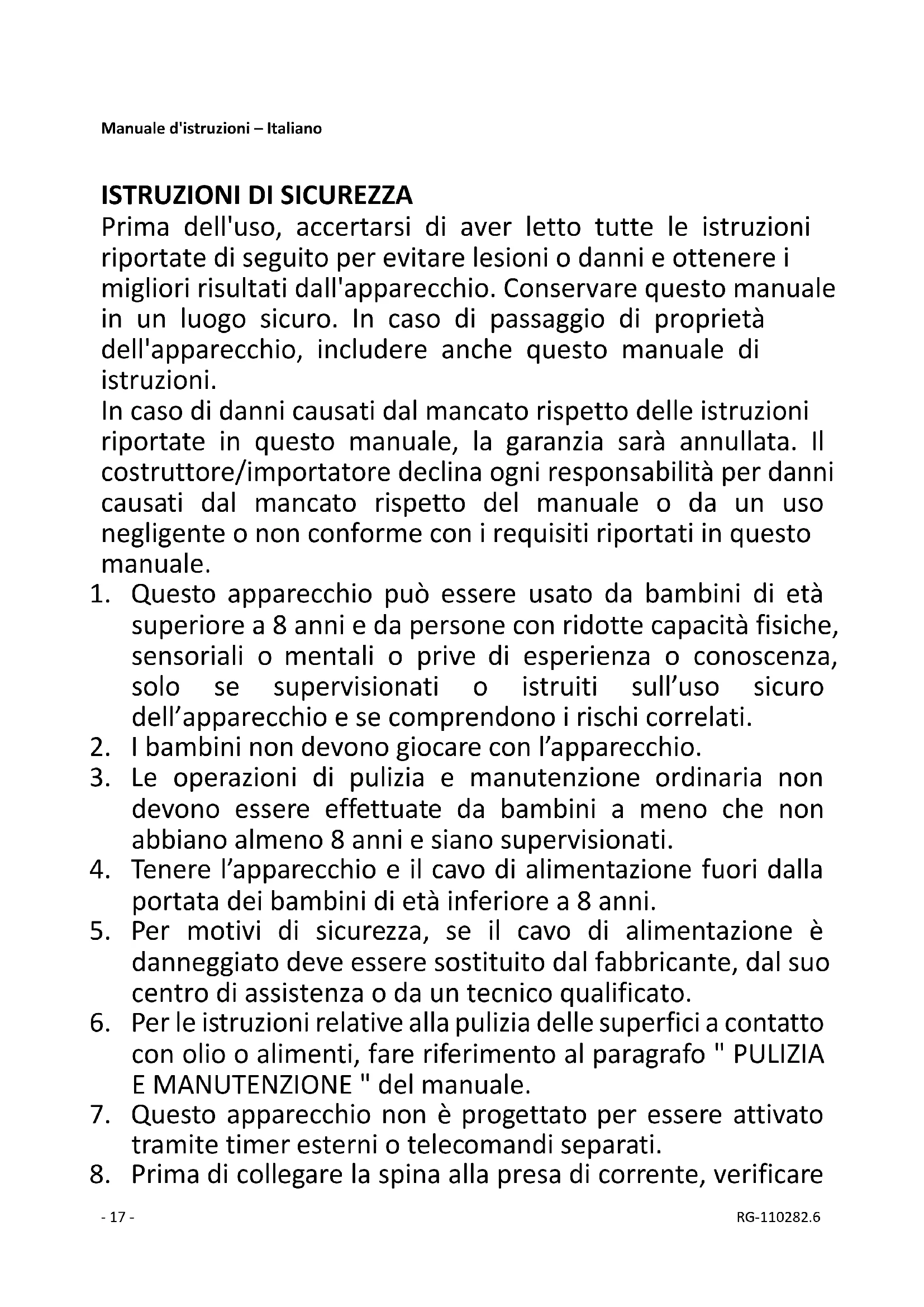 dell'apparecchio comporta il rischio di lesioni.- 19 - RG-110282.6