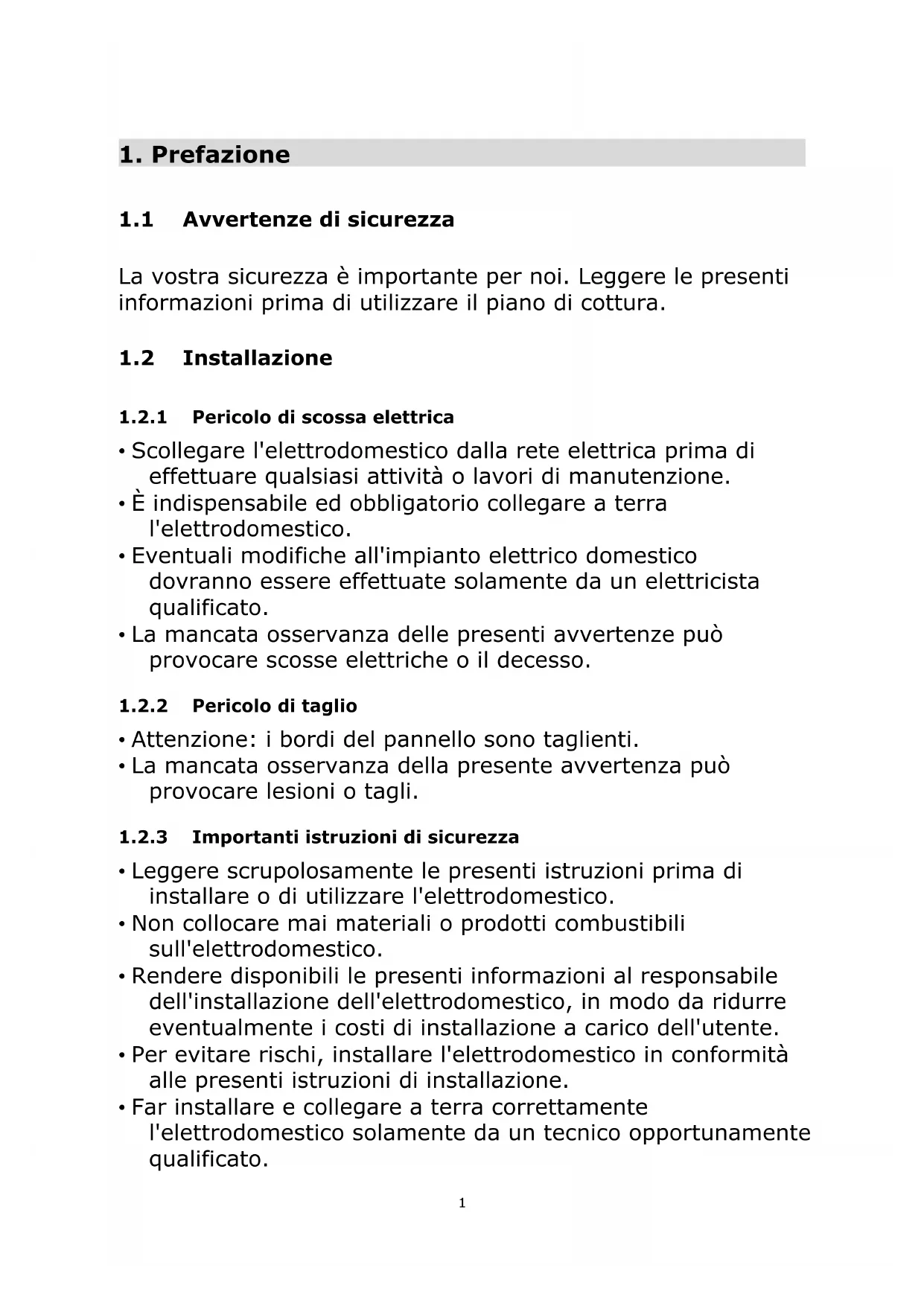 1.2.1 Pericolo di scossa elettrica