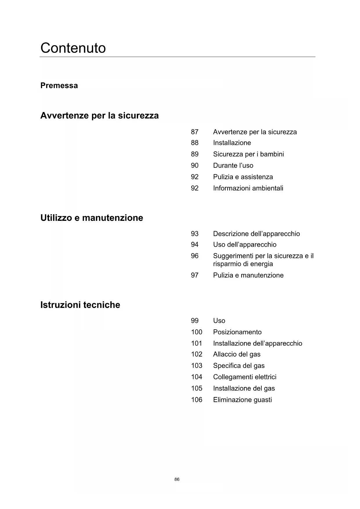 Eliminazione guasti87 Avvertenze per la sicurezza ■ Le presenti istruzioni per l’uso prima di installare o utilizzare l’apparecchio. Le presenti istruzioni per l’uso vanno conservate per eventuali richieste future. ■ Se l’apparecchio viene venduto o consegnato ad un’altra persona, anche le presenti istruzioni per l’uso vanno consegnati al nuovo utente. ■ Il fabbricante declina qualsiasi responsabilità per l’inosservanza di tali misure di sicurezza. ■ Le seguenti avvertenze sono strutturate in modo da essere facilmente comprensibili, al fine di evitare infortuni dovuti ad un abuso e per consentire un uso confortevole dell’apparecchio. ■ Leggere attentamente i seguenti capitoli.
