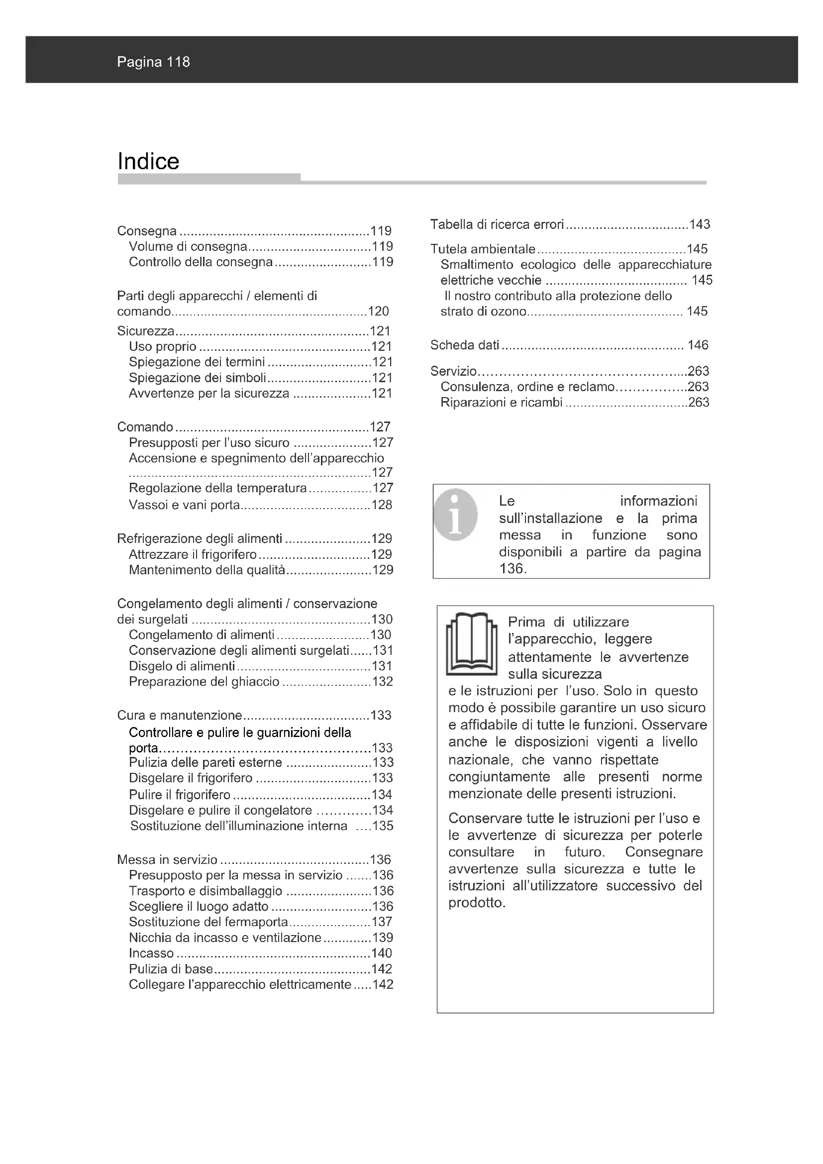 - Disgelare e pulire il congelatore ………….134 Sostituzione dell’illuminazione interna ….135 Messa in servizio p. 136