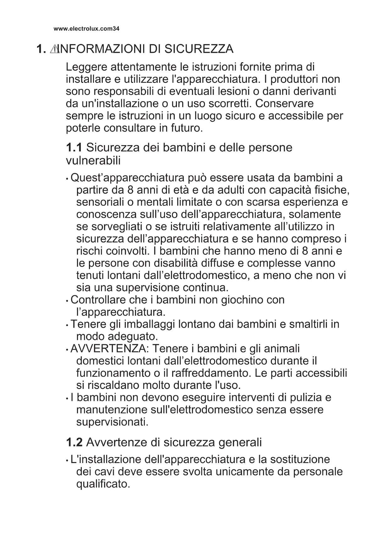 - AVVERTENZA: Servirsi unicamente di protezioni per il piano cottura progettate dal produttore dell'apparecchiatura o indicate dallo stesso nelle istruzioni d'uso, ad esempio accessori idonei o le protezioni del piano cottura incorporate nell'apparecchiatura. L'uso inadeguato delle protezioni può causare incidenti. www.electrolux.com362. ISTRUZIONI DI SICUREZZA