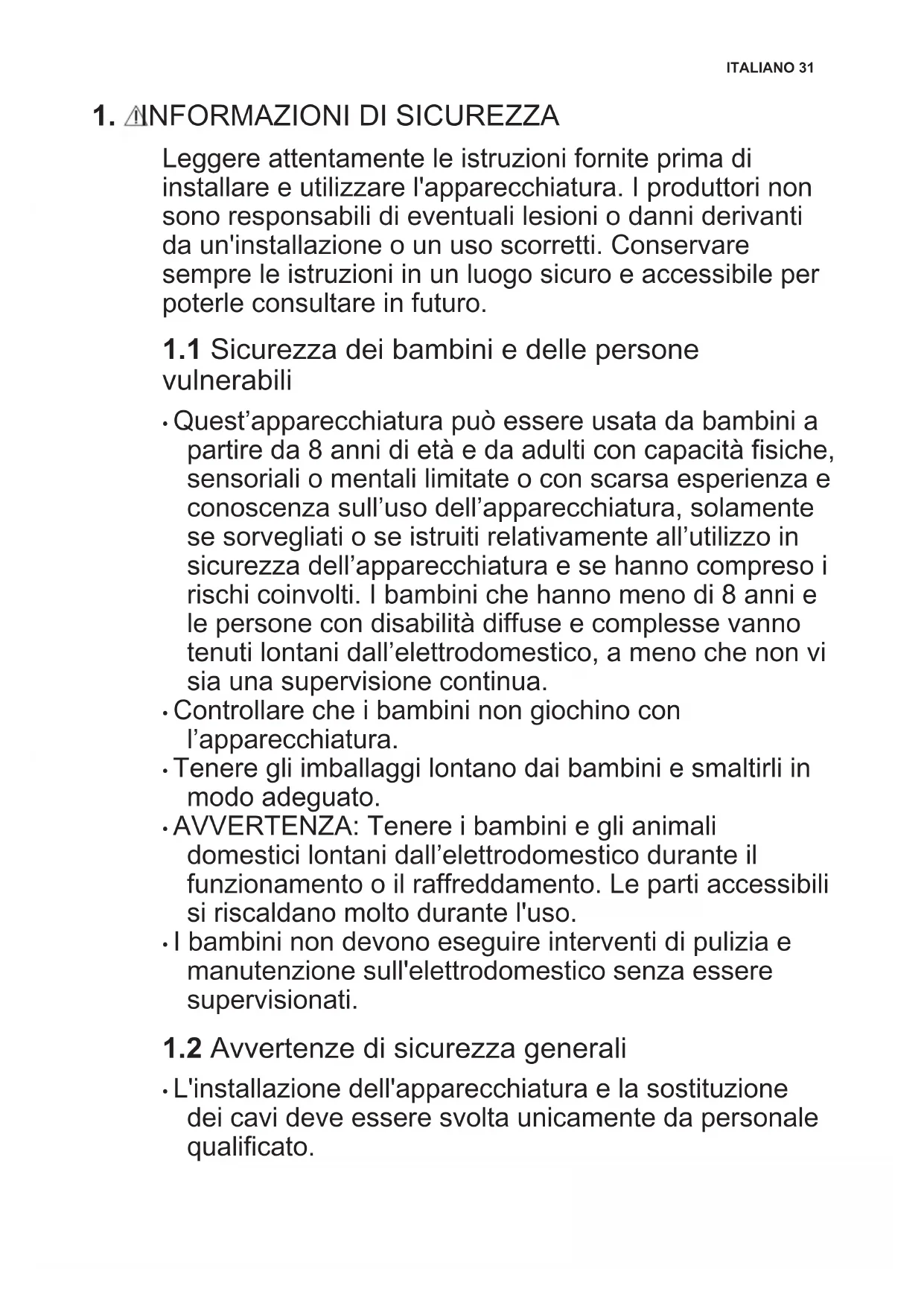 1.2 Avvertenze di sicurezza generali