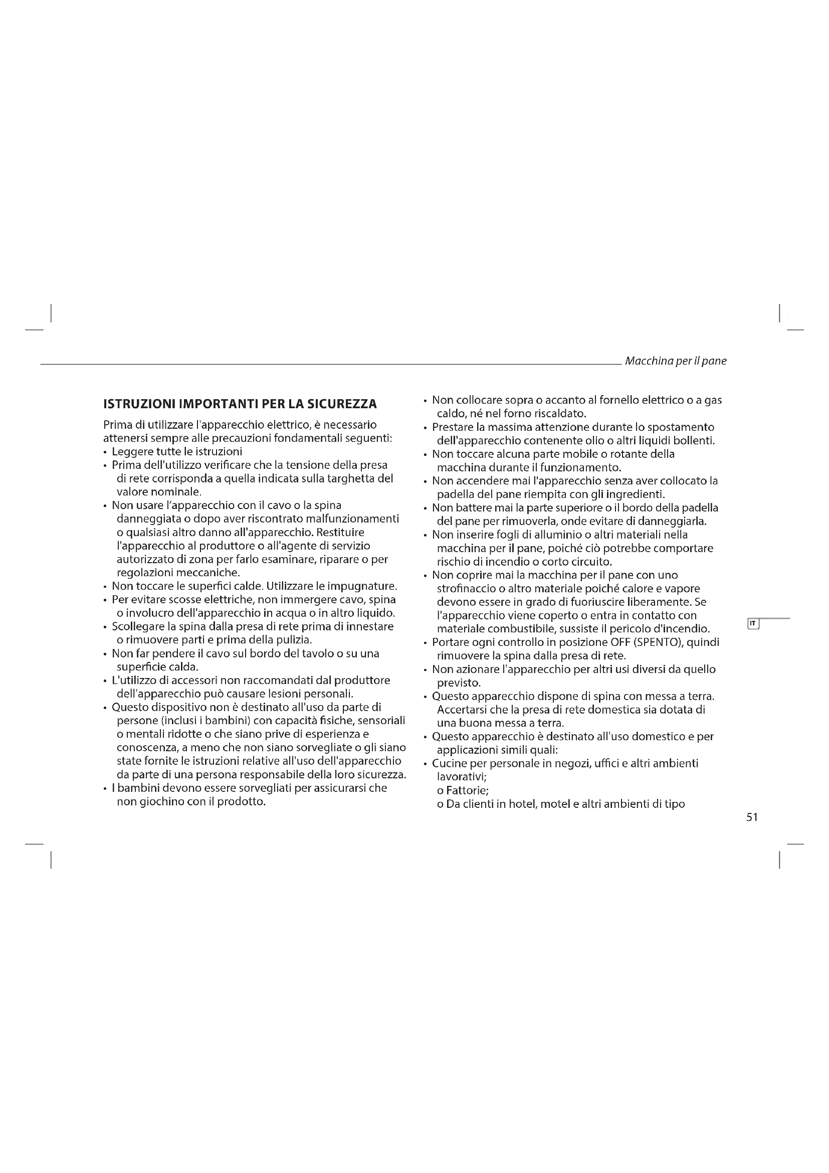 - Non accendere mai l'apparecchio senza aver collocato la padella del pane riempita con gli ingredienti.