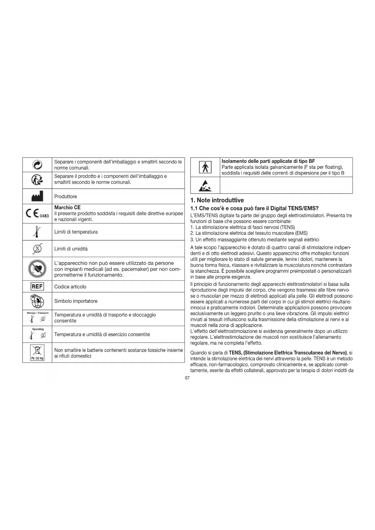 1.1 Che cos’è e cosa può fare il Digital TENS/EMS?.......................... 67