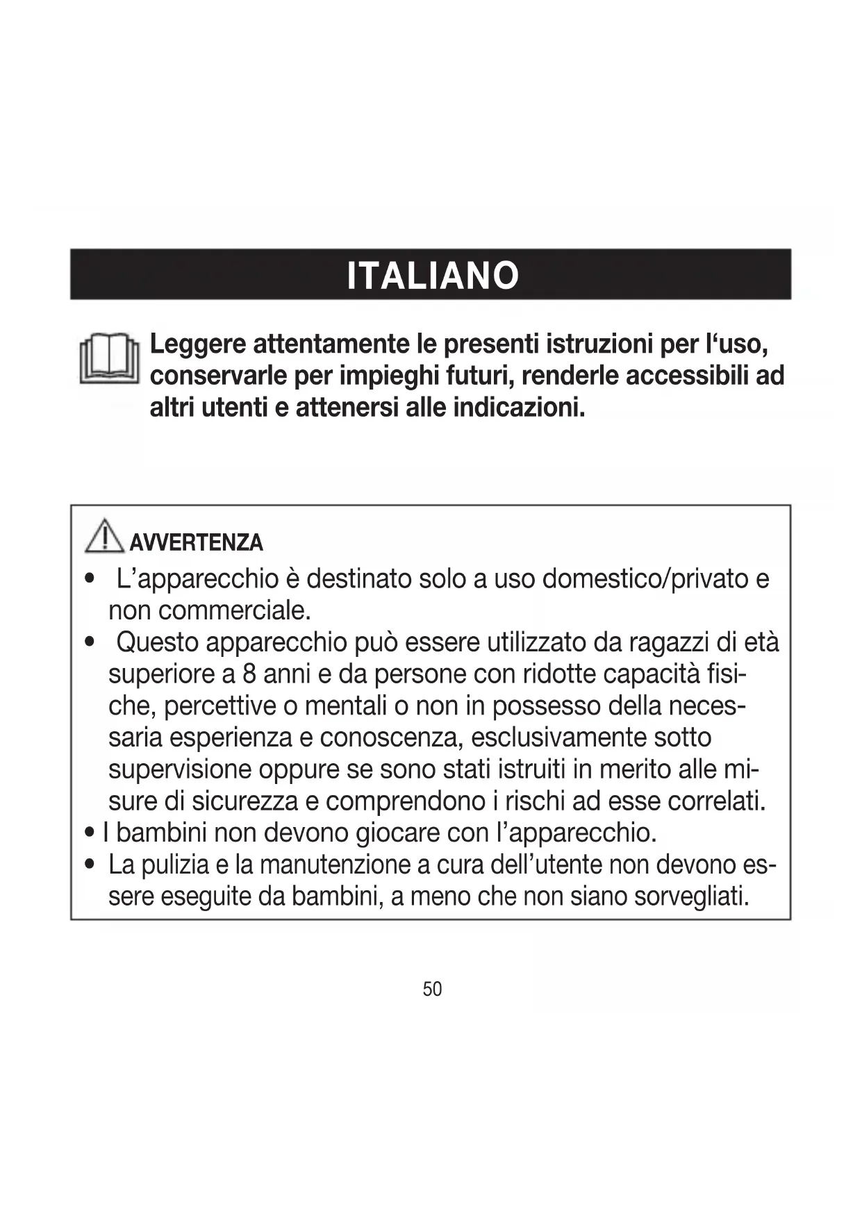 - Questo apparecchio può essere utilizzato da ragazzi di età superiore a 8 anni e da persone con ridotte capacità fisi