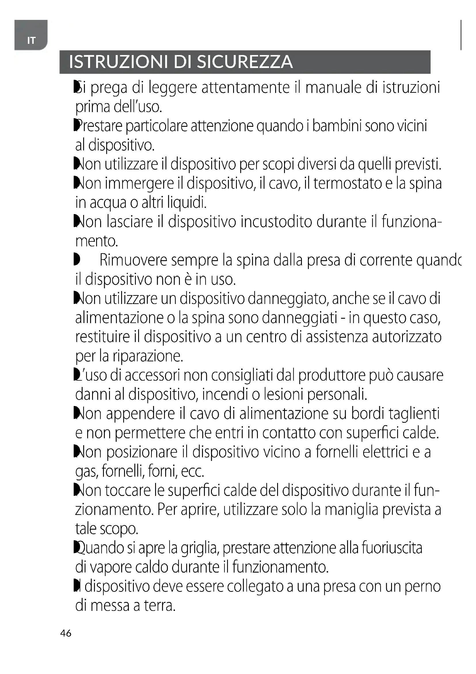 ne „PULIZIA E MANUTENZIONE”. ATTENZIONE! Dopo aver ulizzato il grill con le piastre in posizione aperta, non chiudere il co