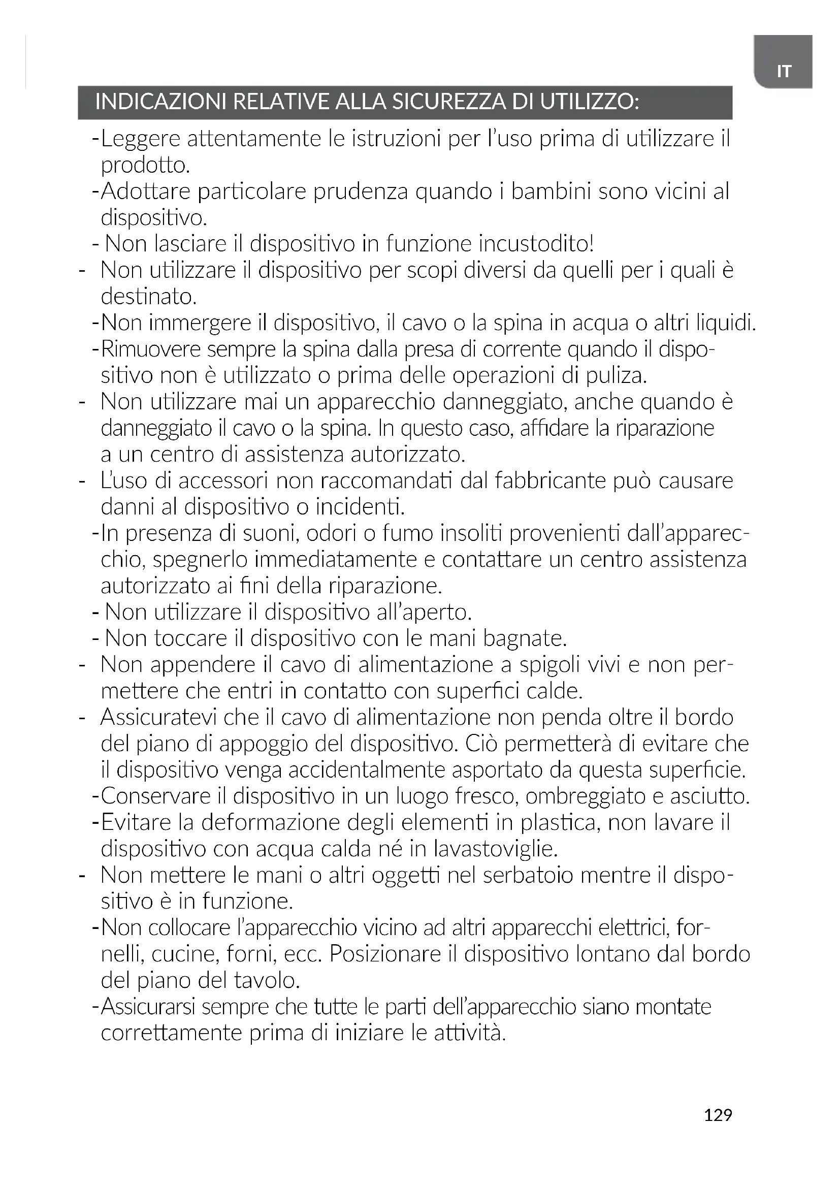 Adoare parcolare prudenza quando i bambini sono vicini al disposivo. - Non lasciare il disposivo in funzione incustodito! - Non ulizzare il disposivo per scopi diversi da quelli per i quali è desnato.