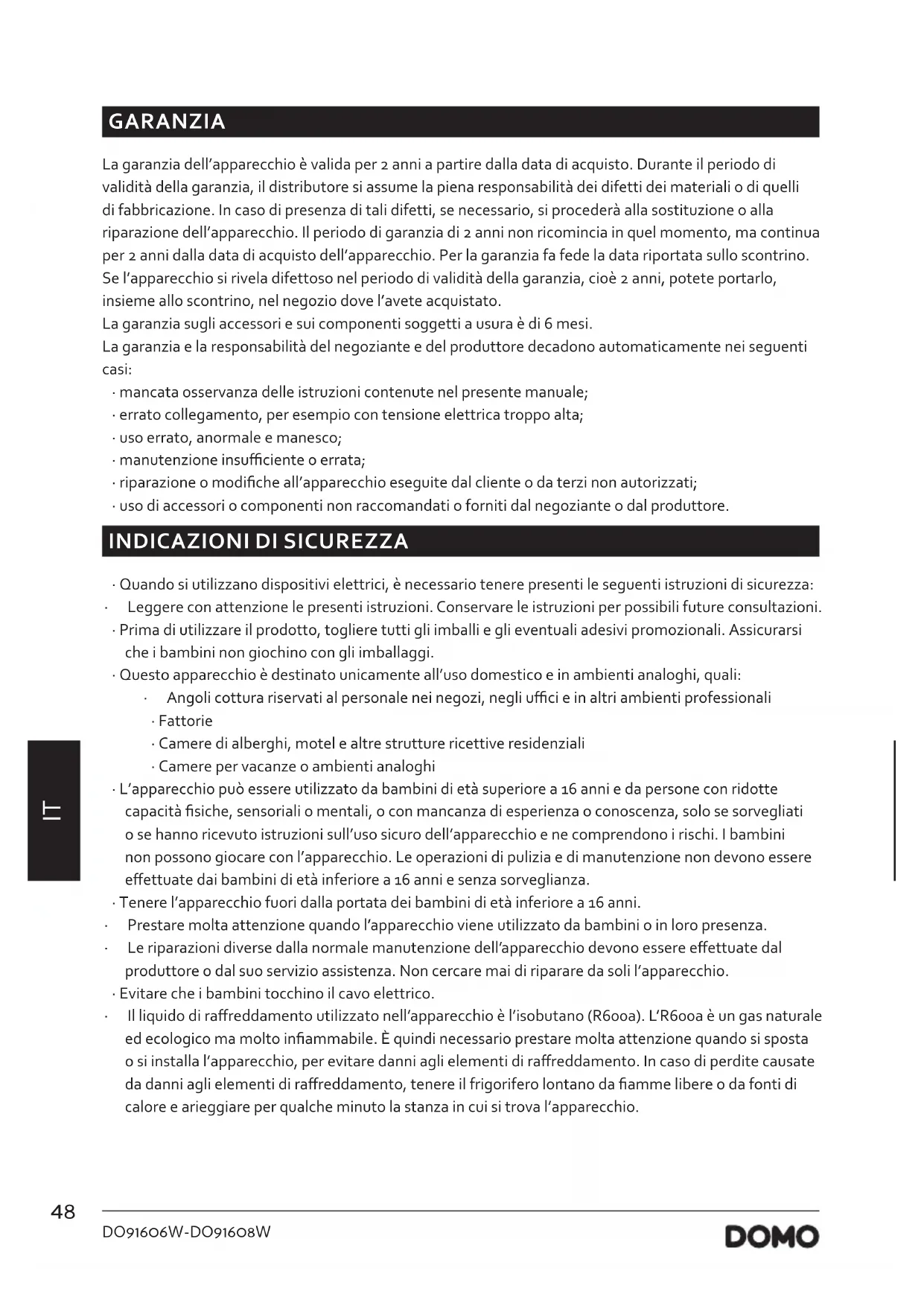 MANUALE UTENTE DO91606W DOMO