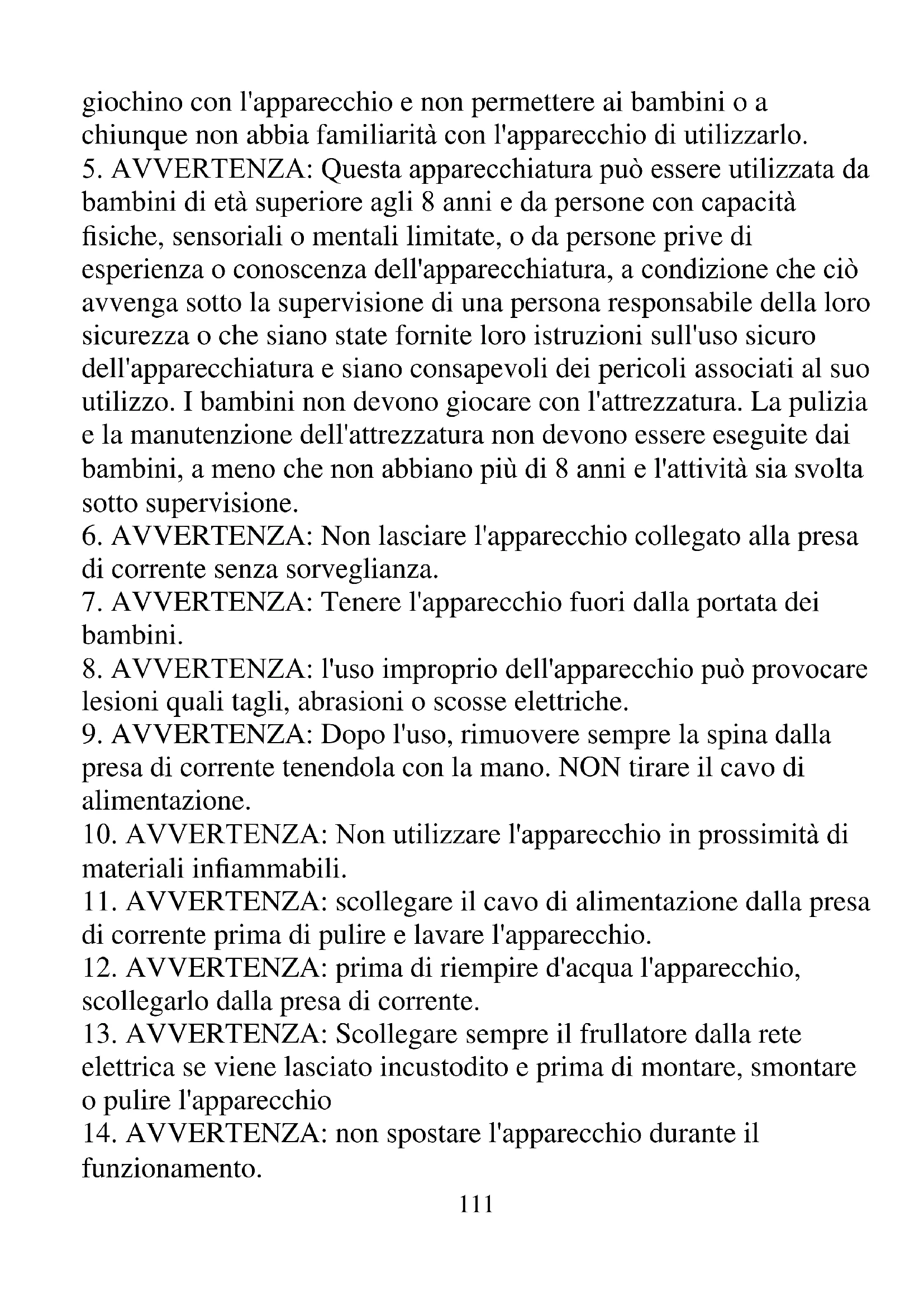 8. AVVERTENZA: l'uso improprio dell'apparecchio può provocare