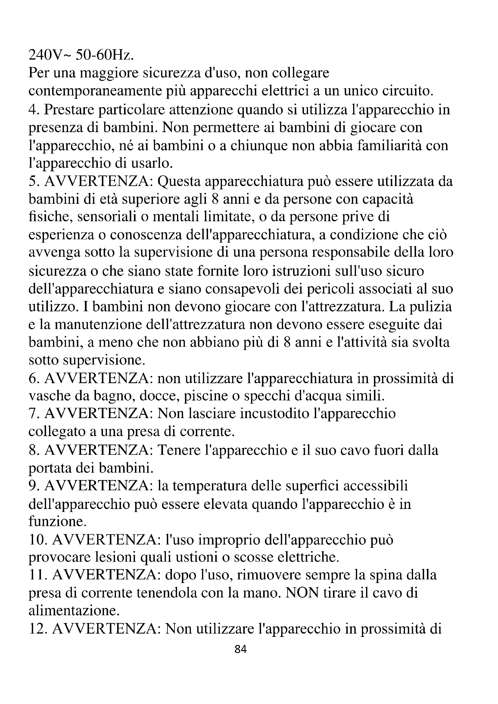 12. AVVERTENZA: Non utilizzare l'apparecchio in prossimità di85