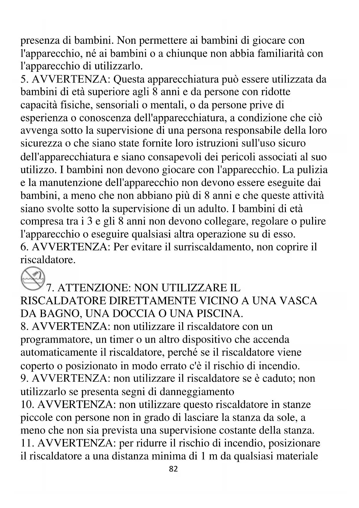 8. AVVERTENZA: non utilizzare il riscaldatore con un