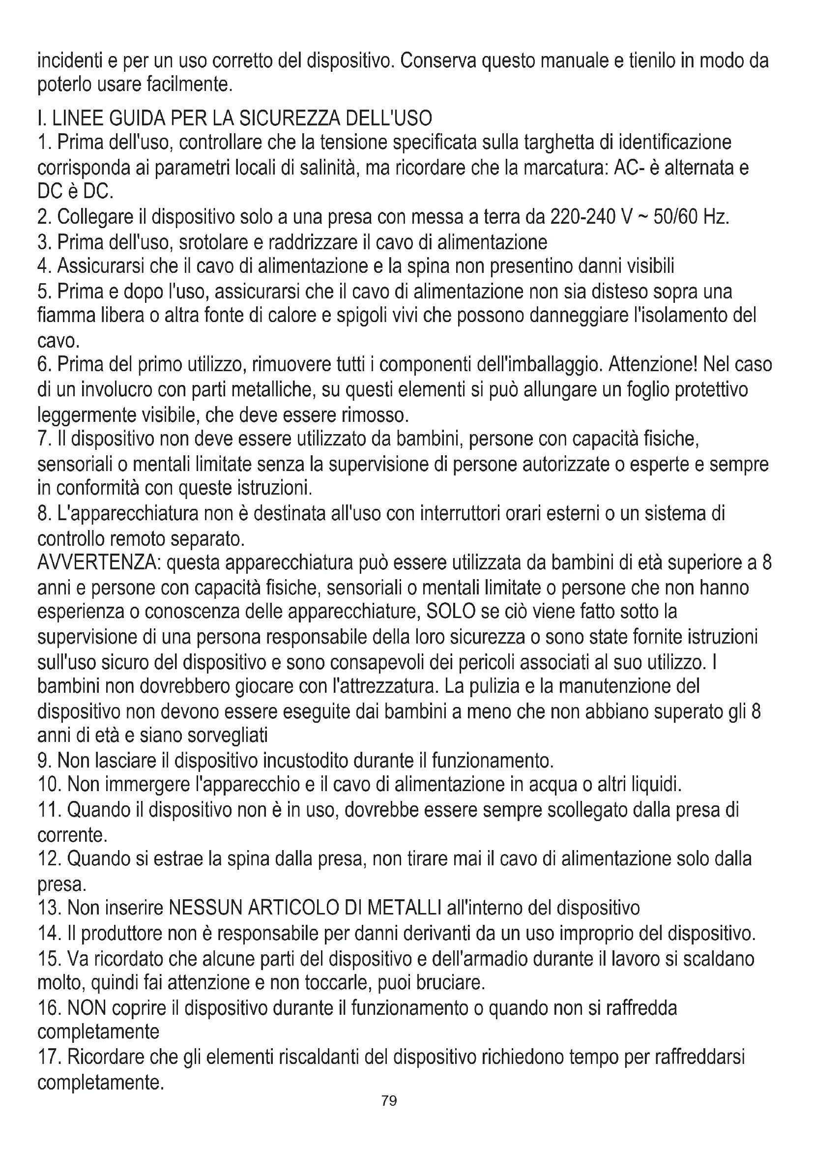 14. Il produttore non è responsabile per danni derivanti da un uso improprio del dispositivo.