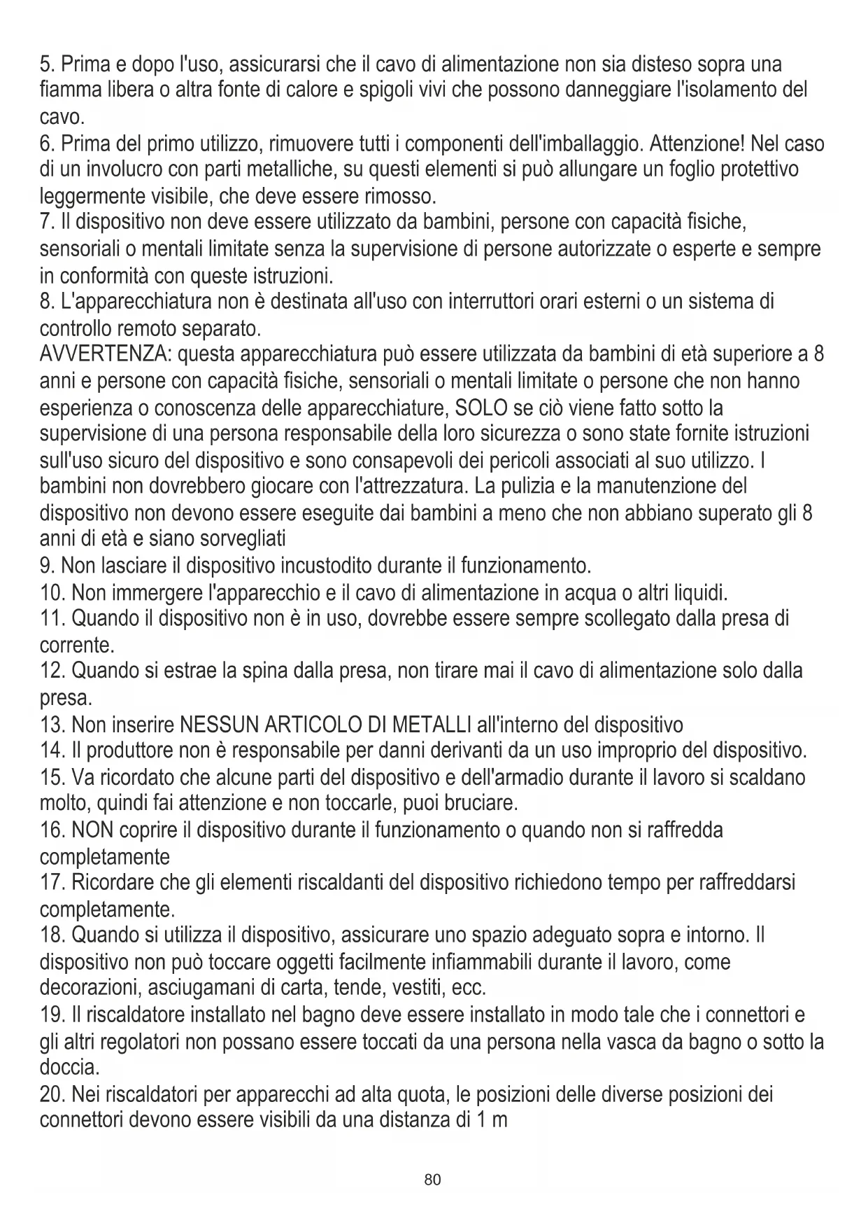 19. Il riscaldatore installato nel bagno deve essere installato in modo tale che i connettori e