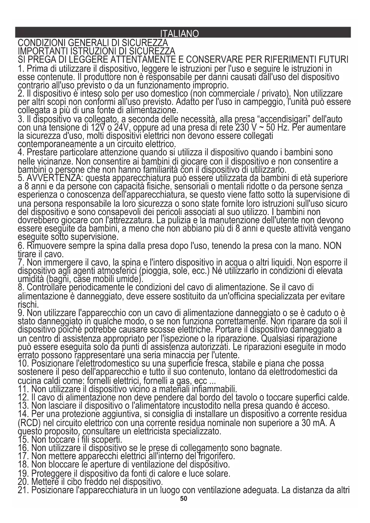 con una tensione di 12V o 24V, oppure ad una presa di rete 230 V ~ 50 Hz. Per aumentare la sicurezza d'uso, molti dispositivi elettrici non devono essere collegati contemporaneamente a un circuito elettrico.