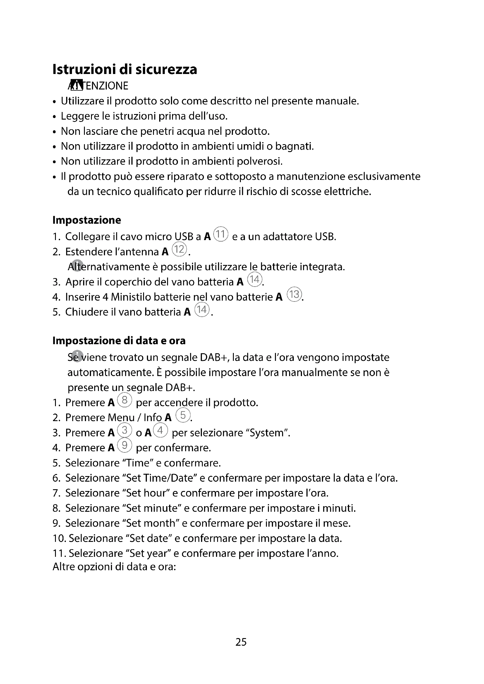 Coperchio del vano batteria25 Istruzioni di sicurezza