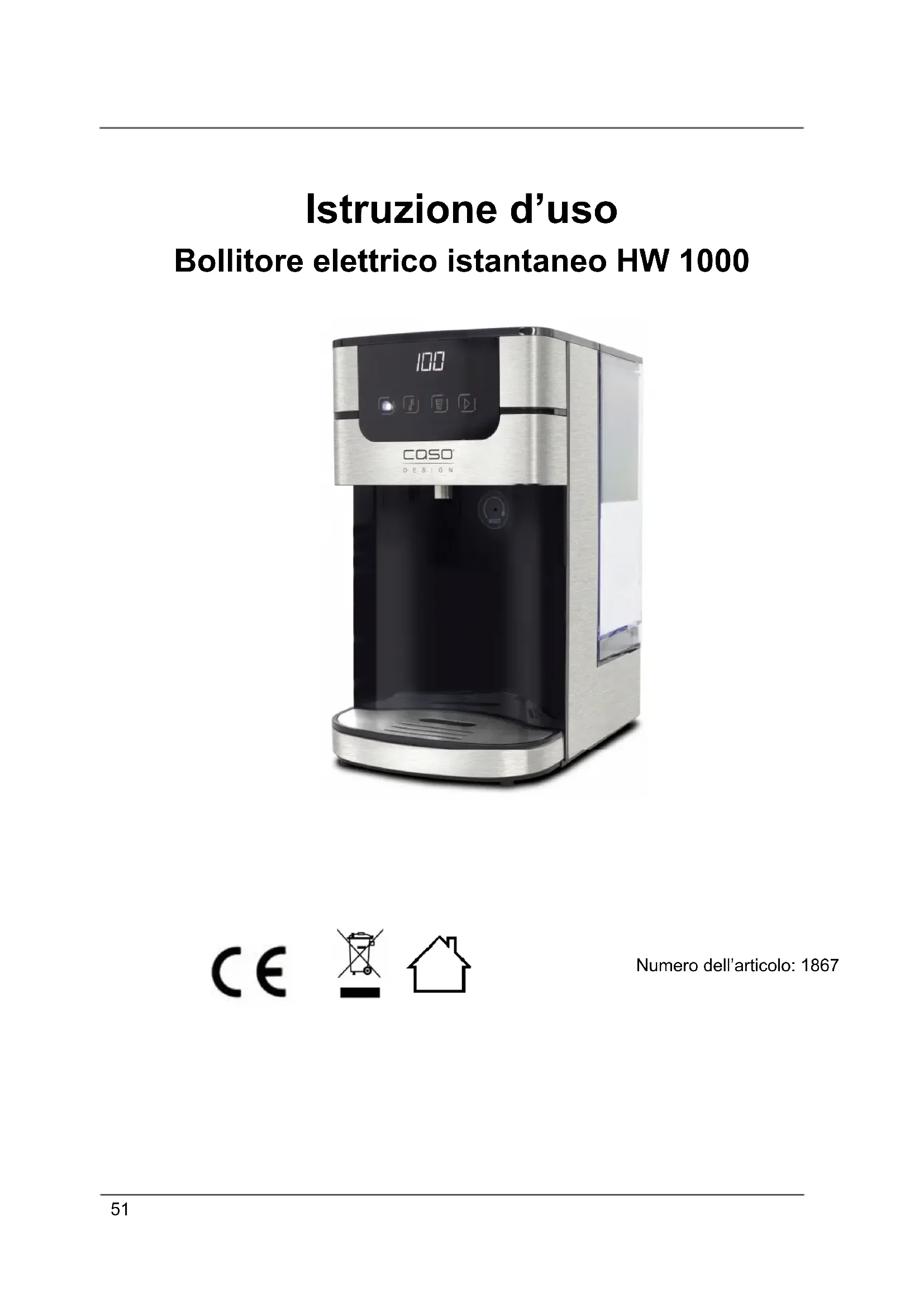 HW 1000 - Distributore d'acqua CASO - Manuale utente e istruzioni gratuiti